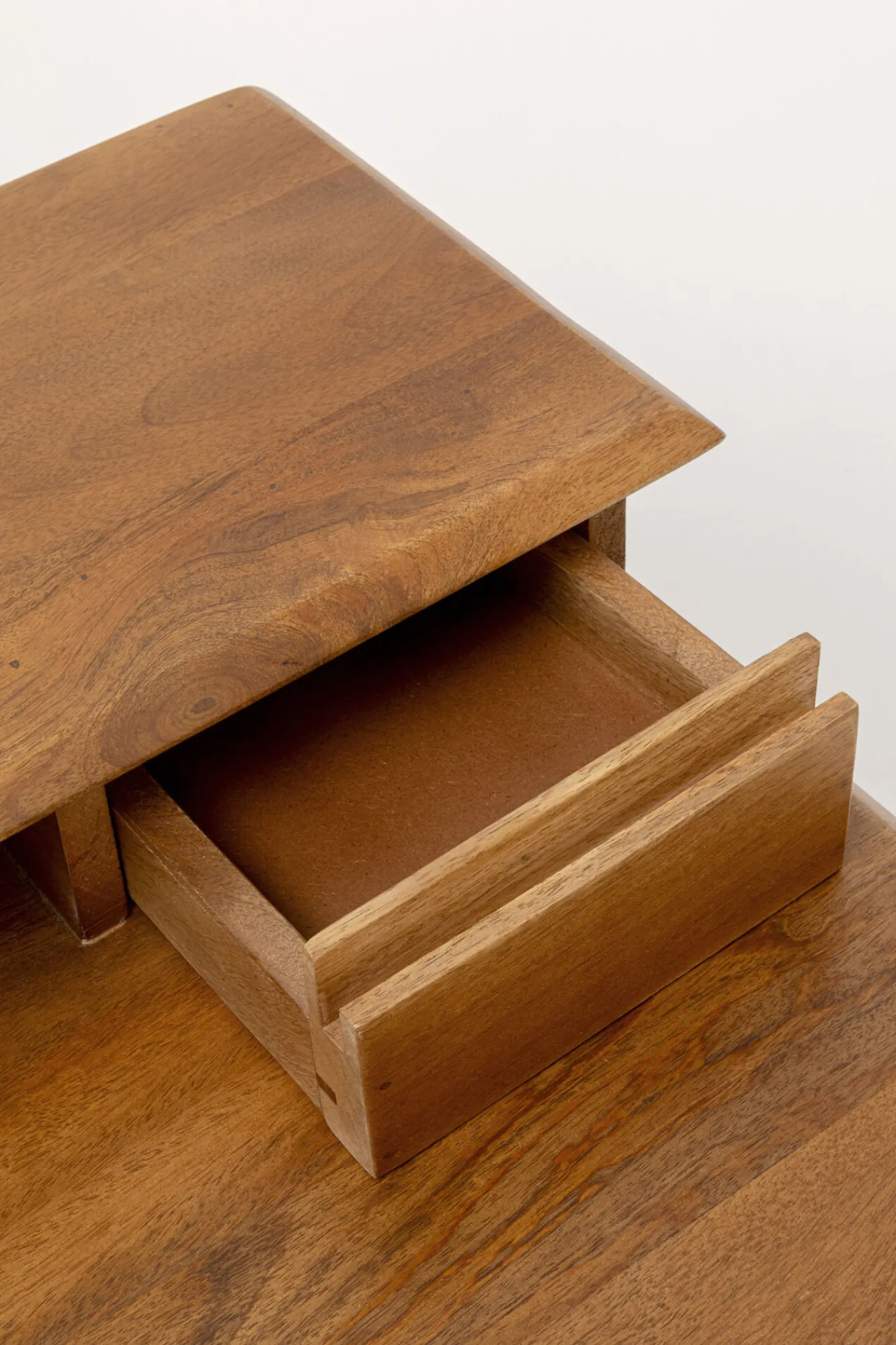 Klasyczne prostokątne biurko drewniane w stylu minimalistycznym z kolekcji Brooklyn reprezentuje tradycyjne ręczne rzemiosło. Jest dziełem wiodącej firmy KARE słynącej z niepodrabialnej, bezkompromisowej wersji home designu. Jednak jak się okazuje, ta wizjonerska niemiecka marka nie tylko ekstrawaganckimi kolekcjami stoi. Tutaj czeka na Was współczesna elegancja, misterne wykonanie i najwyższej jakości sztuka stolarska. Mebel ten sporządzono z drewna mango o wyraźnie zaznaczonym rysunku słojów i naturalnej kolorystyce. Proste, czytelne linie, elegancko zaokrąglone kanty, troskliwie dopracowane rzemieślnicze detale oraz dekoracyjny charakter mango – wszystko to sprawia, że prezentowane biurko drewniane z 4 szufladami cechuje ponadczasowa estetyka i szerokie możliwości aranżacyjne.