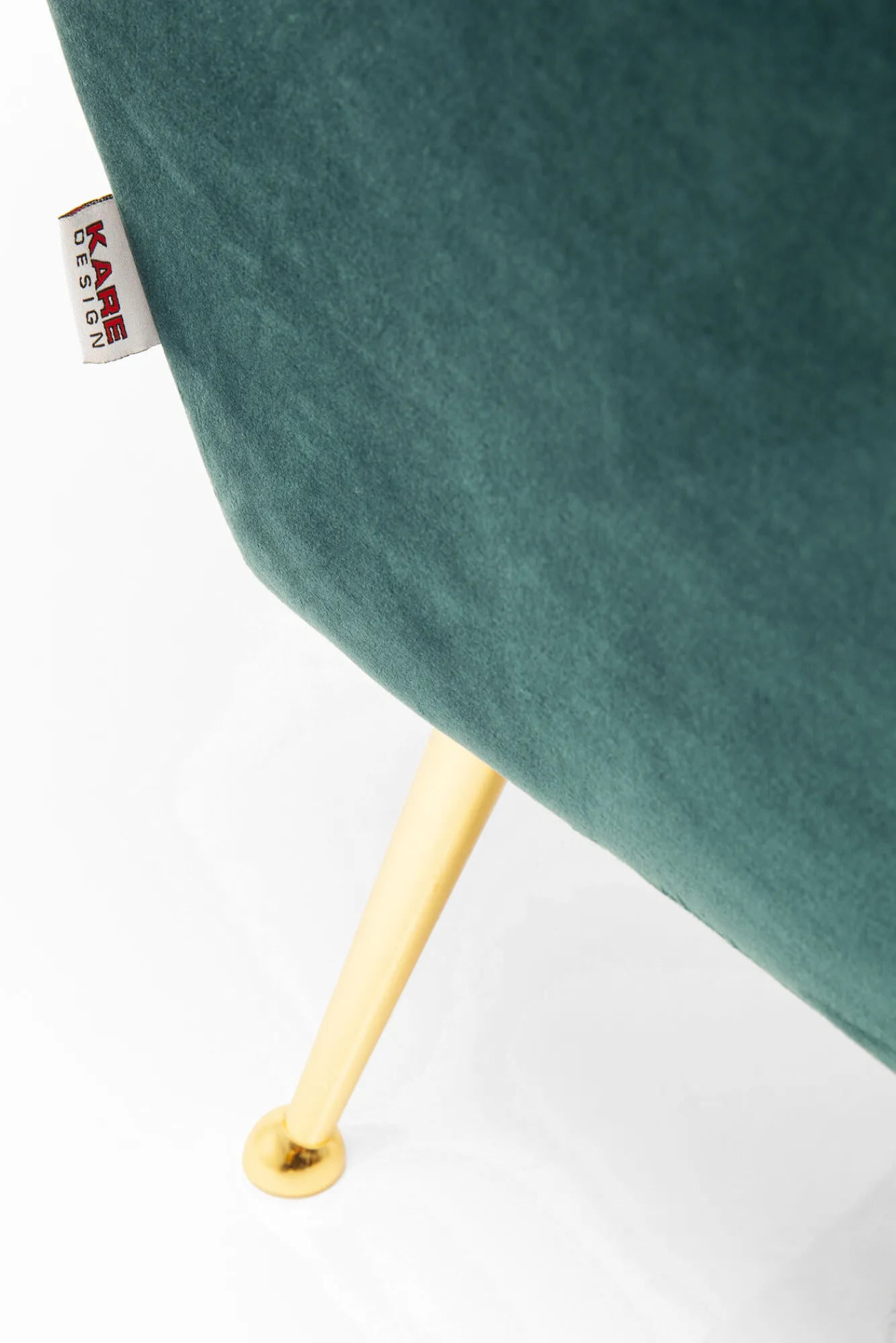 Zachęcający do wypoczynku nowoczesny tapicerowany fotel w stylu glamour Vegas Forever to połączenie komfortu z szykowną wytwornością. Na przyjemny w nim relaks zaprasza Was, znana z wyrafinowanego wzornictwa, ekskluzywna firma KARE. Ta wiodąca niemiecka marka w swoich wizjonerskich projektach dokonuje trudnego połączenia umiaru i ekstrawagancji ze szczyptą awangardy. Tutaj oferuje model, którego wizualne wysmakowanie nie wyeliminowało walorów praktyczno-użytkowych. Taki fotel drewniany tapicerowany został miękką tkaniną i dodatkowo wyposażony w poduchy oraz podłokietniki z rozszerzonym oparciem dla dłoni. Temu meblowi, szczególnej gracji dodają cienkie nóżki ze stali w złotym wykończeniu. Z prezentowanym fotelem welurowym w Waszym salonie będzie i szykownie i wygodnie.