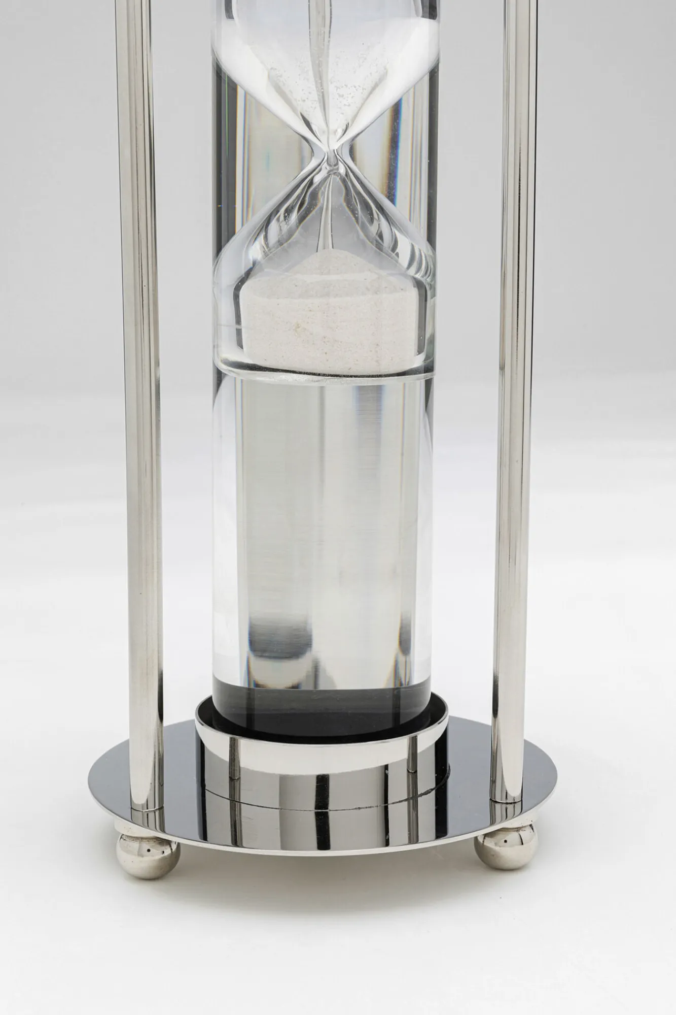 Klepsydra ekskluzywna srebrna stal niklowana i szkło Ø14×30 cm Materiały: stal niklowana, szkło, piasek.