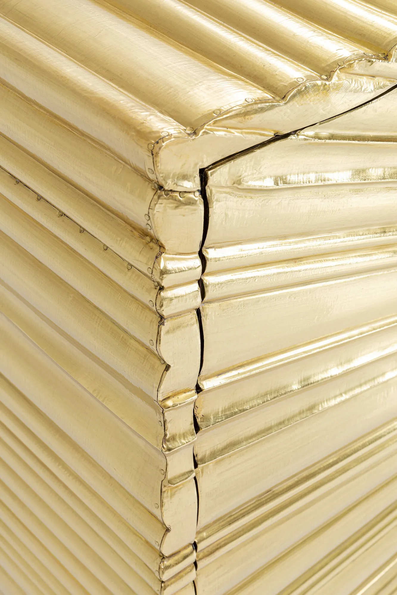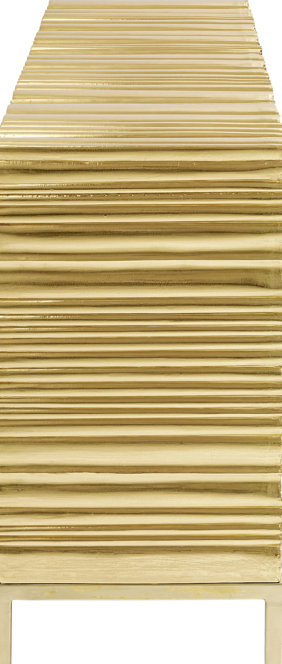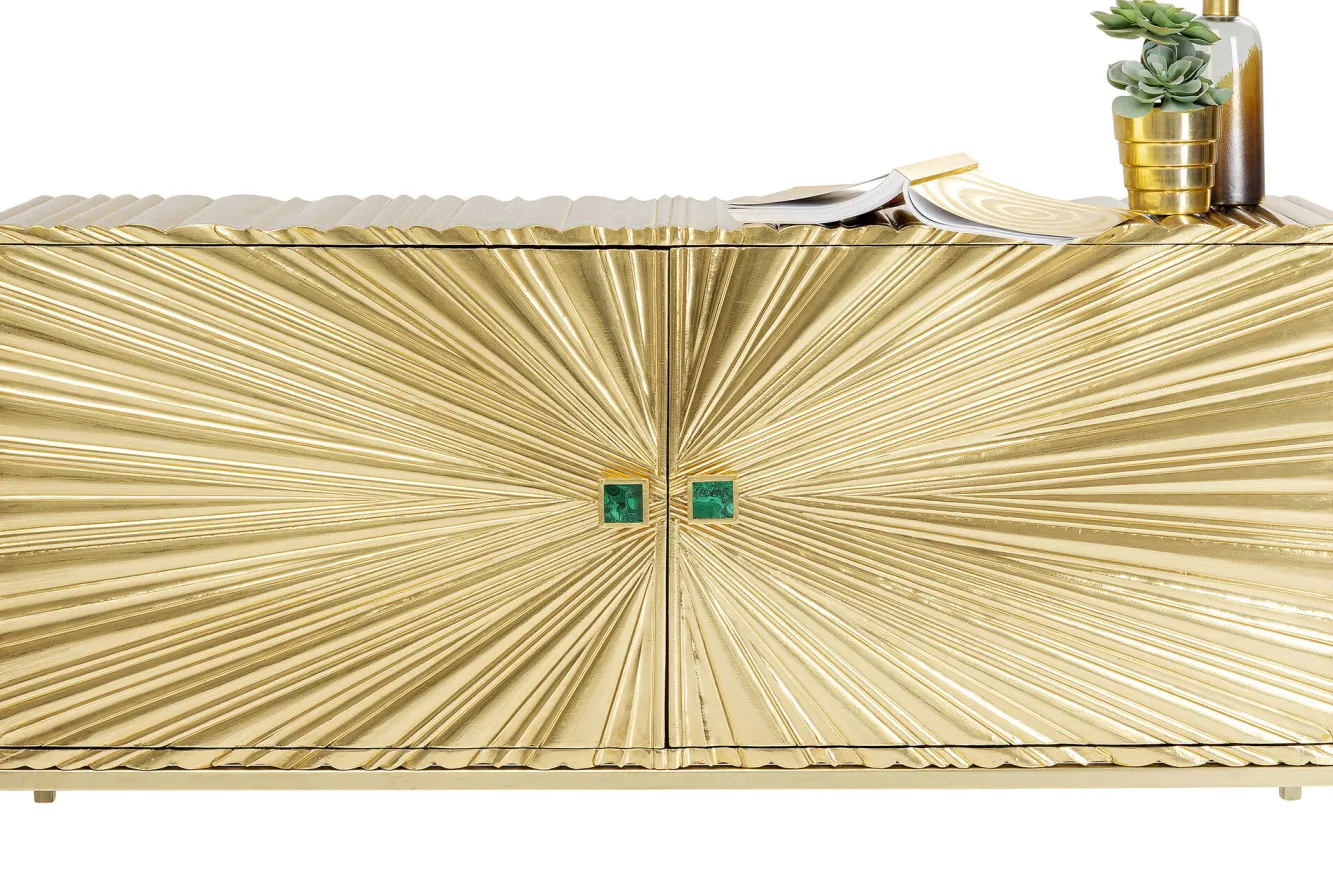 Jeśli nie stronicie od przykuwającego wzrok, efektownego designu, ta awangardowa złota komoda w stylu glamour idealnie wpisze się w Wasze upodobania. Wzbogaca naszą ofertę za sprawą wiodącej firmy KARE. Wizjonerska niemiecka marka już od ponad trzech dekad swoimi bezkompromisowymi, odważnymi projektami stawia na głowie światowy home design i pozwala spełniać marzenia o pięknym i niebanalnym wystroju wnętrz. Tutaj mamy do czynienia z niezwykle silnym wizualnym oddziaływaniem, bogactwem i obfitością zdobień. Ta komoda domaga się uznania, chce być w centrum uwagi, a nie pozostawać w cieniu. Wniesie ze sobą atmosferę niecodziennego luksusu i wprowadzi klimat bankietowy. Prezentowana komoda złota będzie sercem ekskluzywnej aranżacji.
