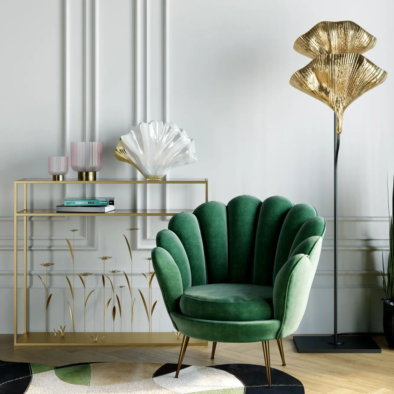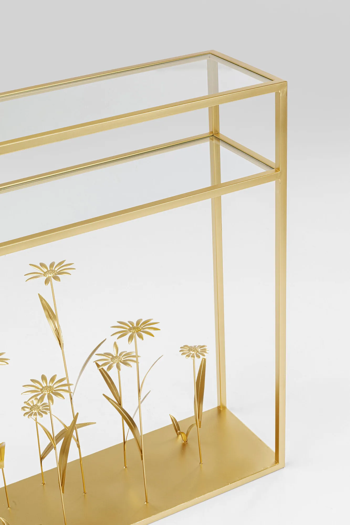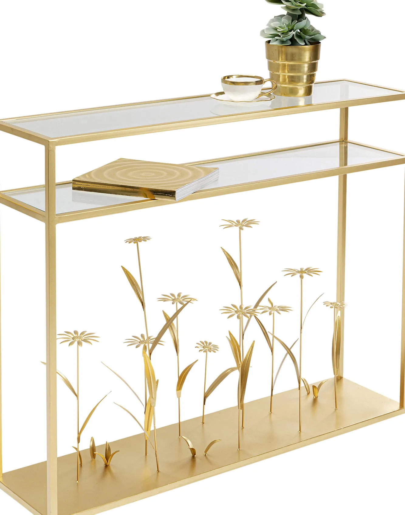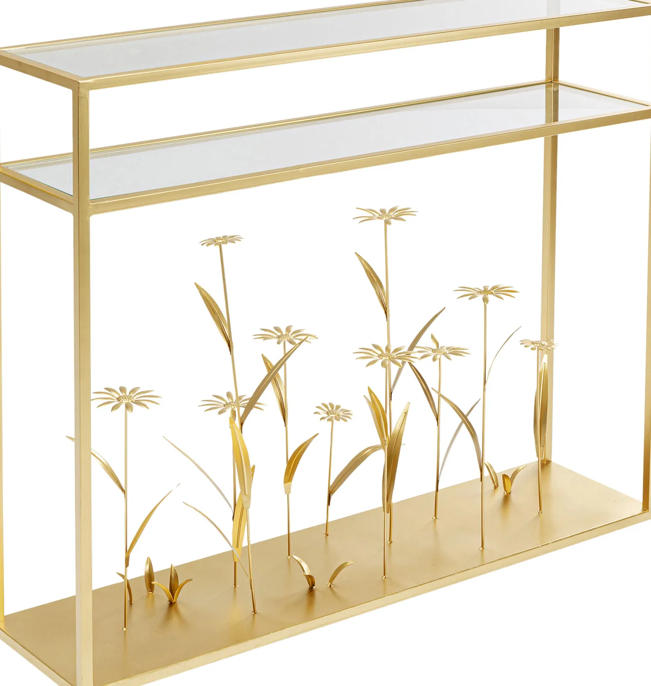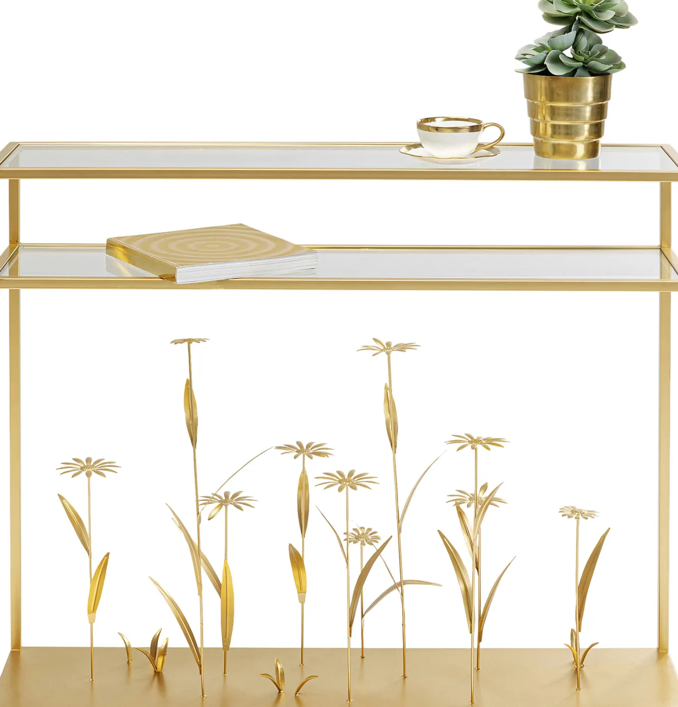 Konsola Flower Meadow 100×25 cm złota Blat: szkło hartowane 5 mm, Rama: stal lakierowana