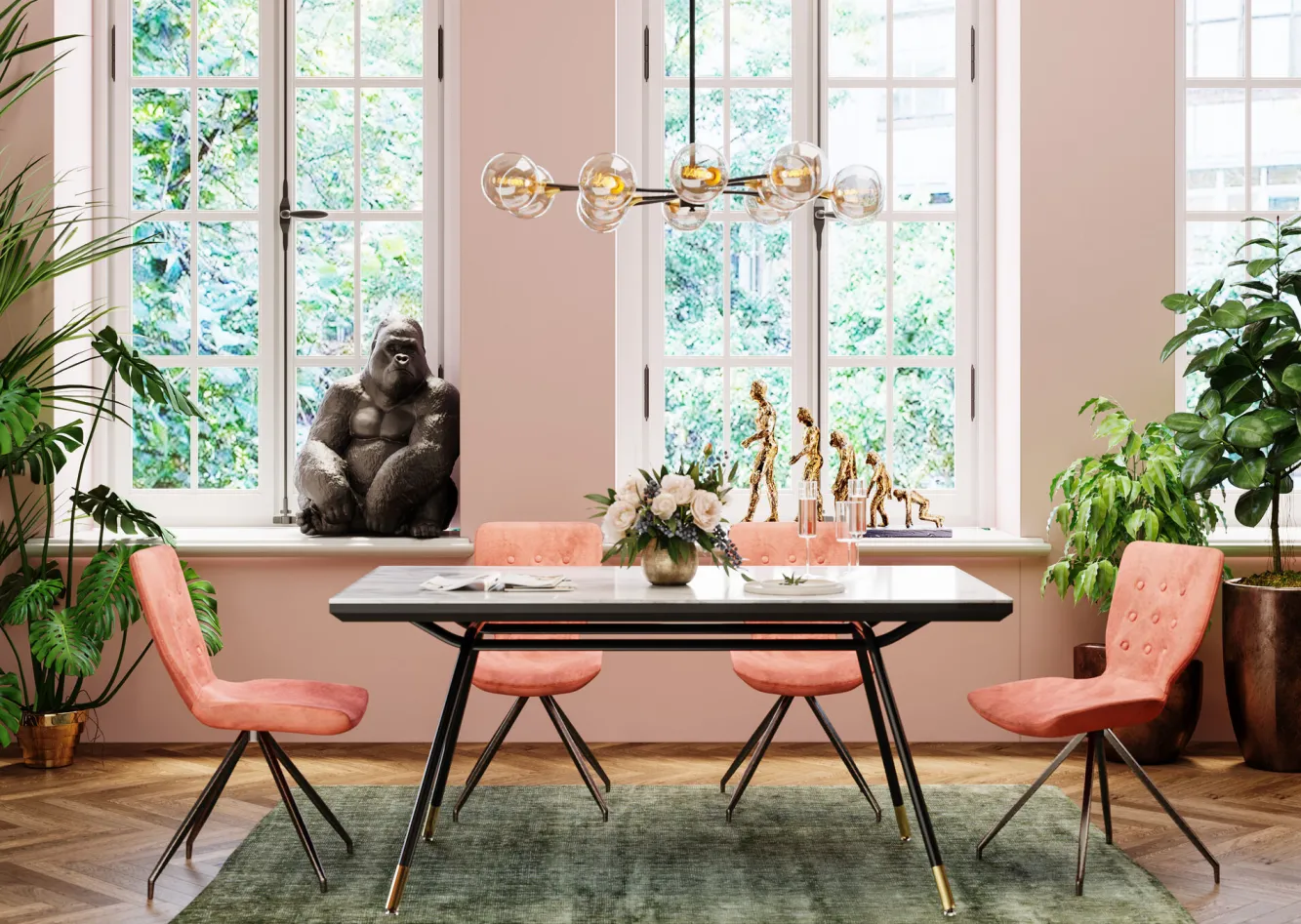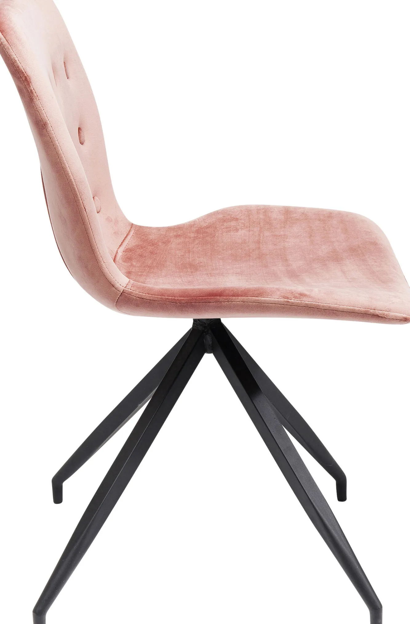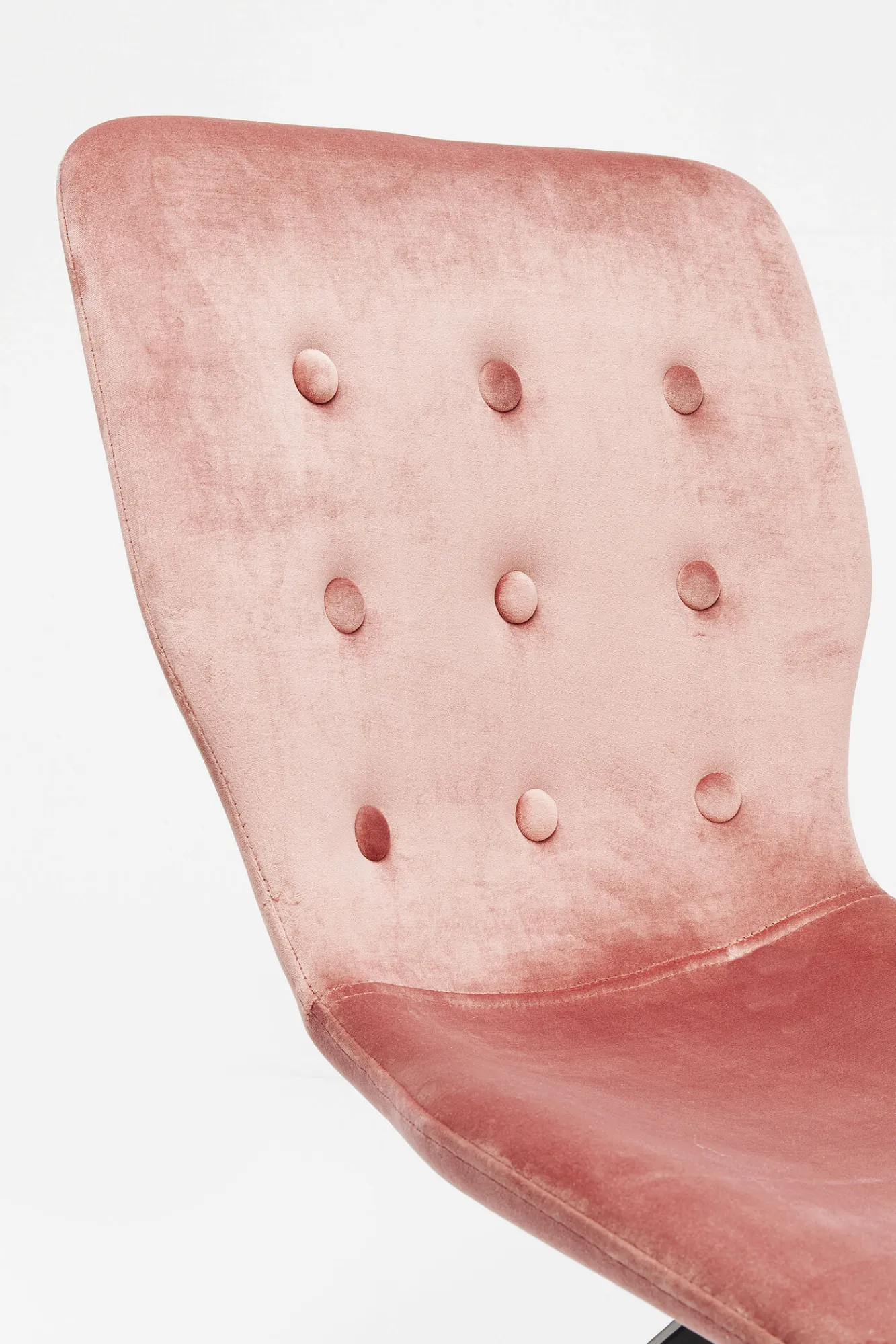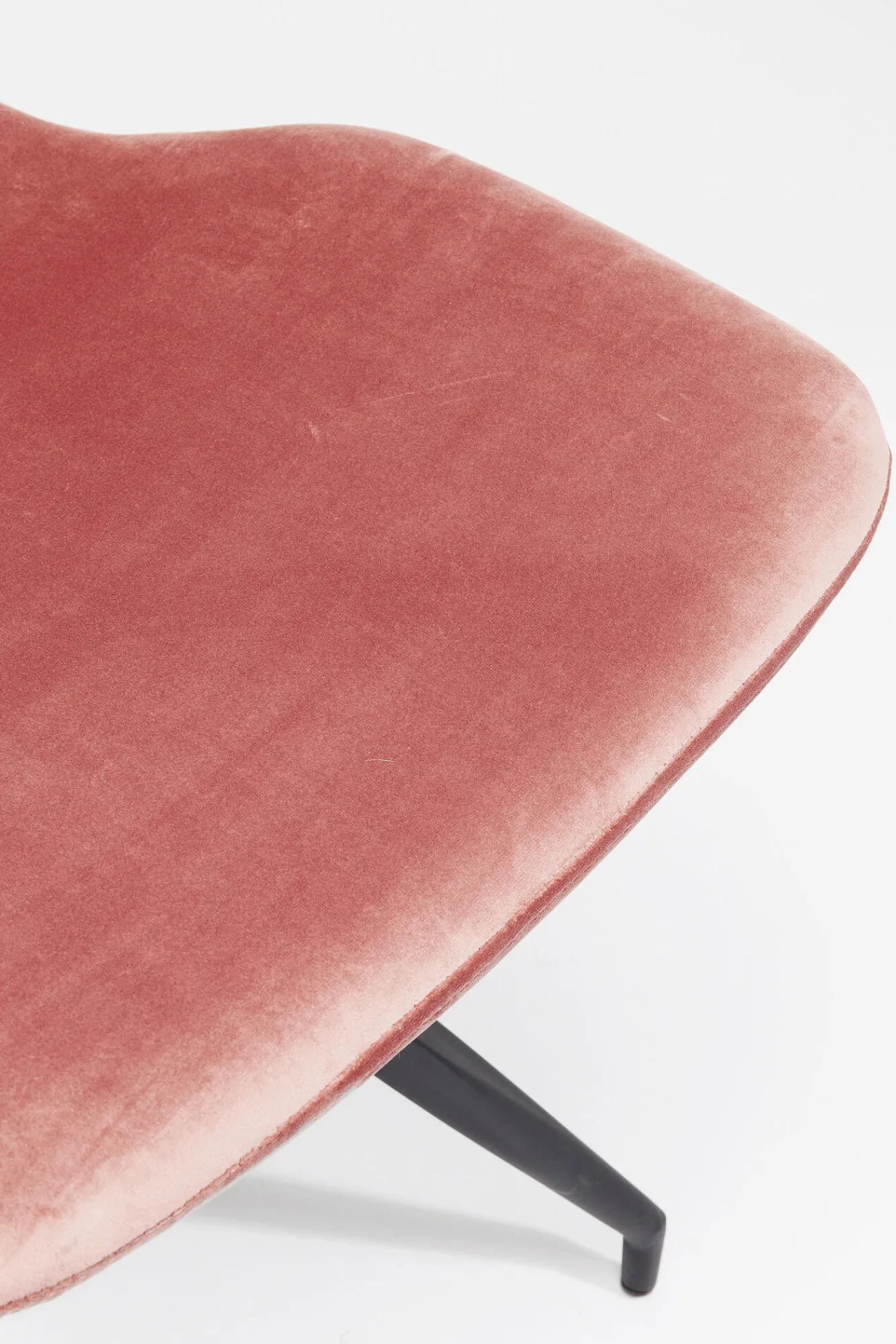 Tapicerowane krzesło welurowe w stylu nowoczesnym Butterfly dostępne jest w kilku wariantach – tutaj krzesło tapicerowane różowe na czarnych nogach.