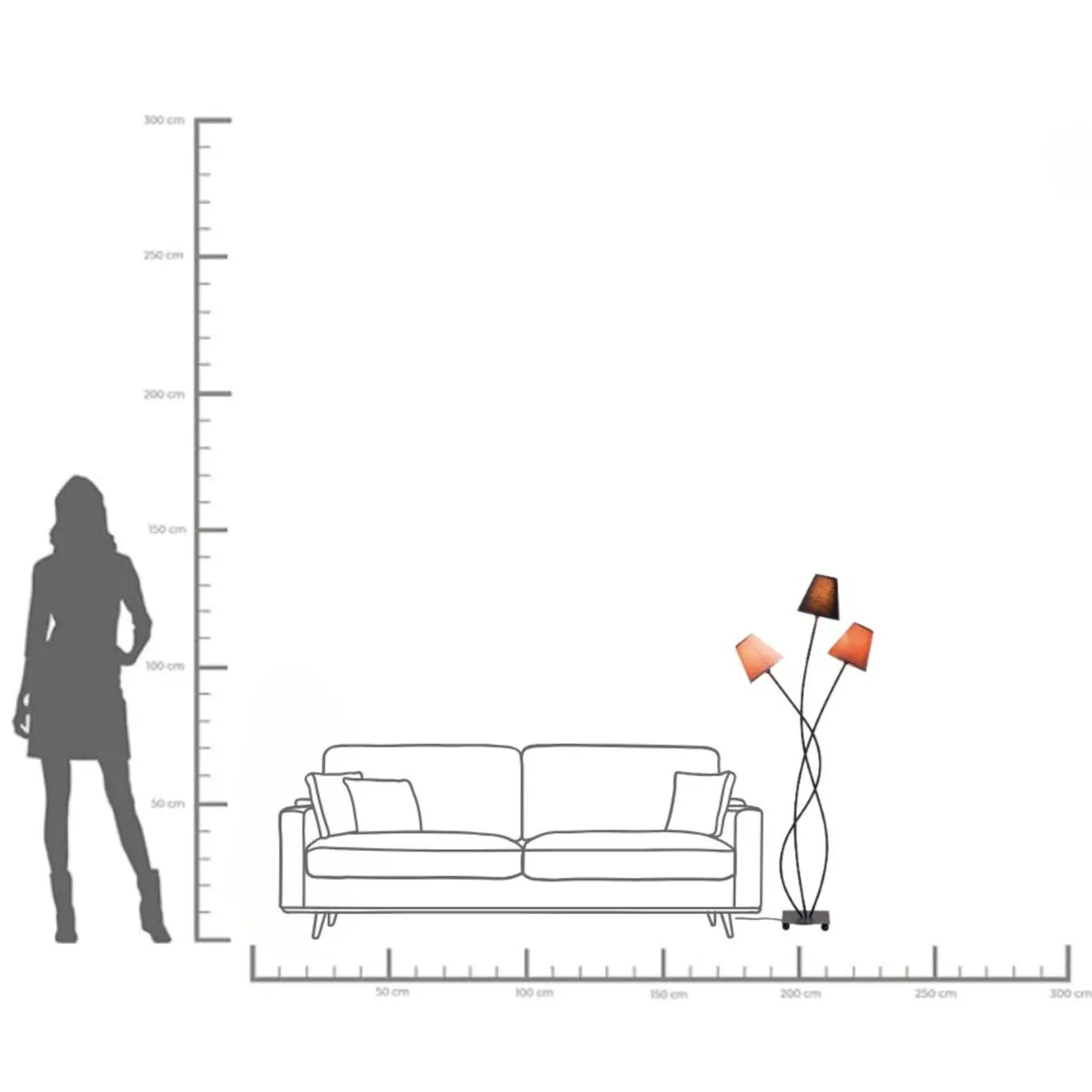 Dostępna tutaj awangardowa lampa podłogowa w stylu nowoczesnym zasilana jest 3 żarówkami o max. mocy 40 W z gwintem E14.