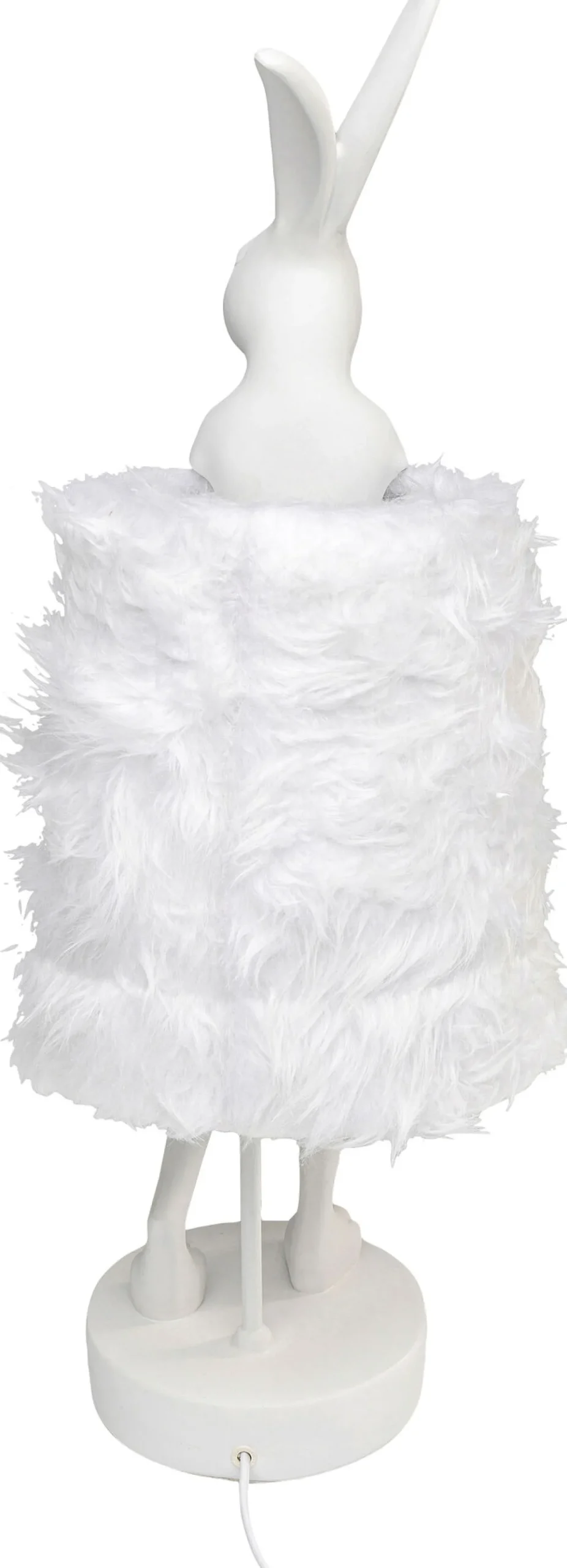 Lampa stołowa biała królik abażur futrzasty 68 cm Dekoracja (królik): polirezyna.Stelaż: stal malowana proszkowo.A…