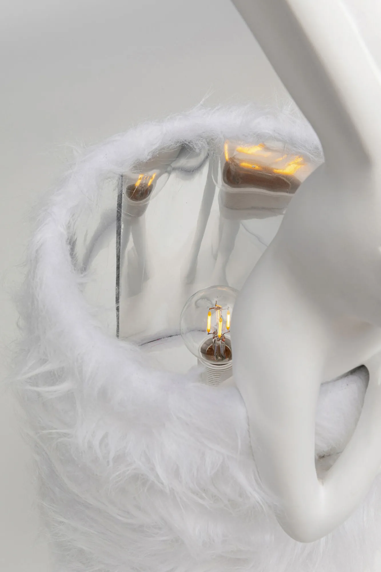 Lampa stołowa biała królik abażur futrzasty 68 cm