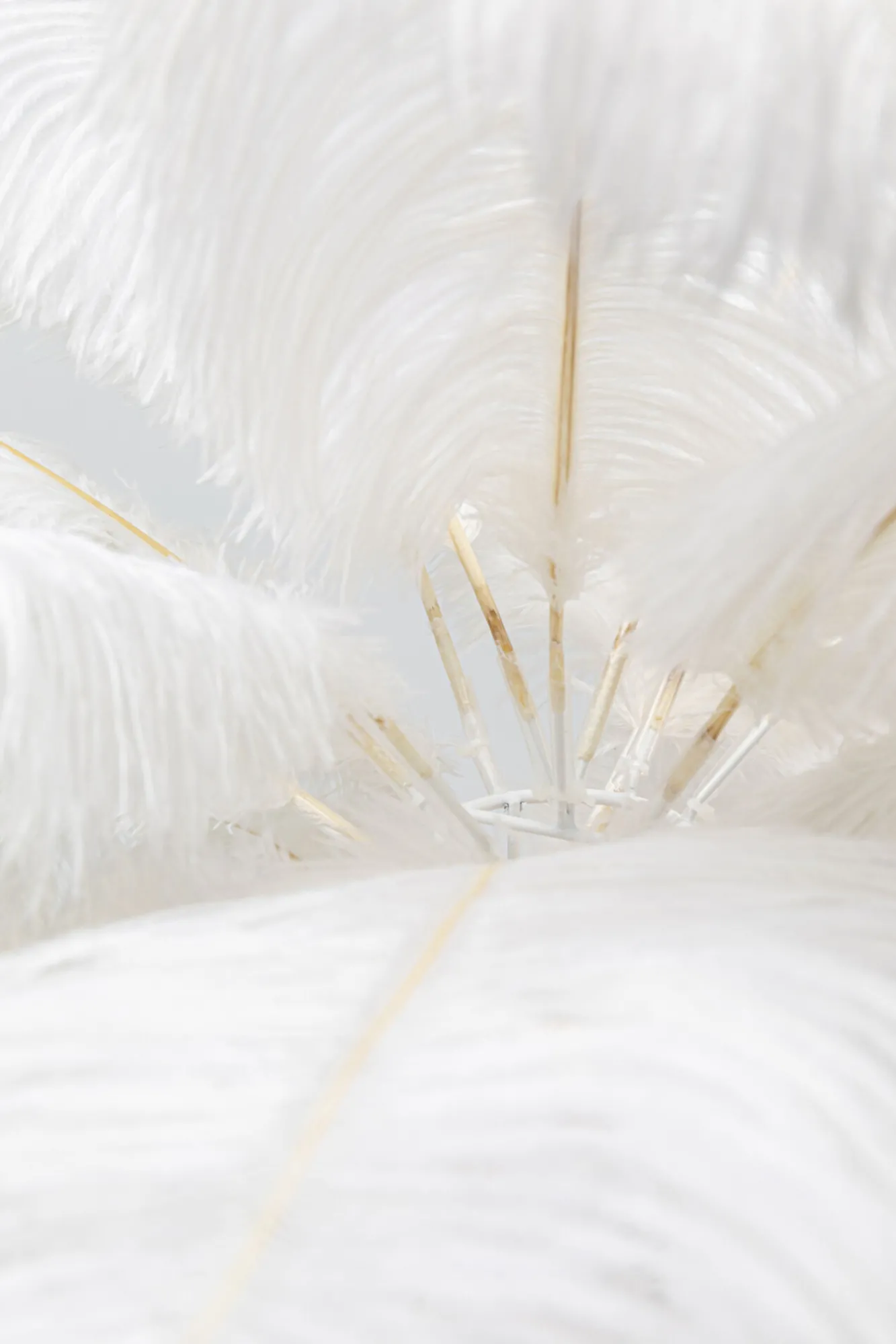 Lampa stołowa palma biała strusie pióra 60 cm podstawa złota Podstawa: stal mosiężna.Klosz: pióra strusie.Klosz j…