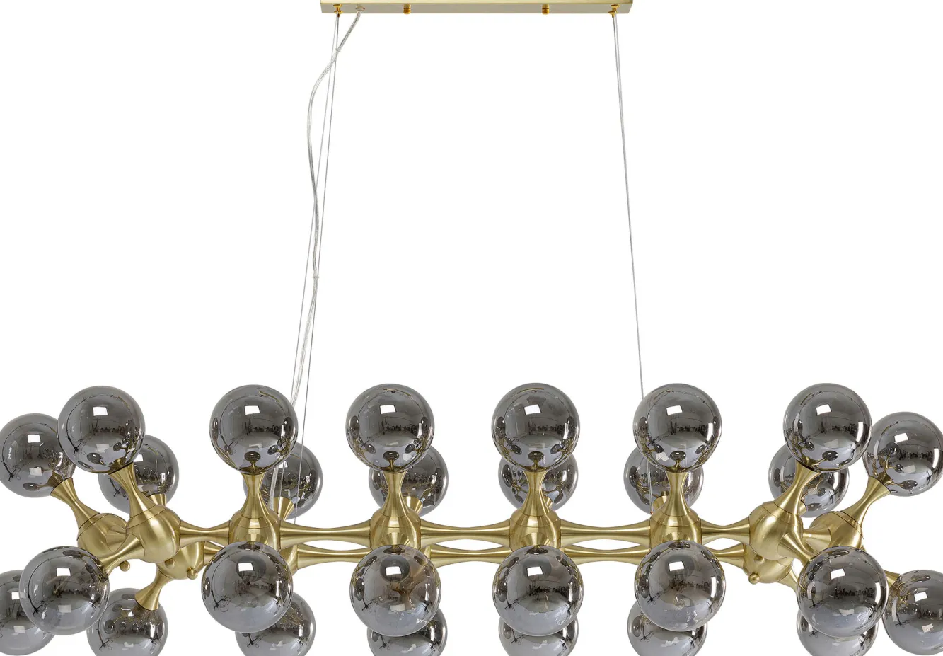 Lampa wisząca Atomic Balls 140 cm złota – klosze przydymione Materiały: stal mosiężna, szkło barwione.Wysokość r…