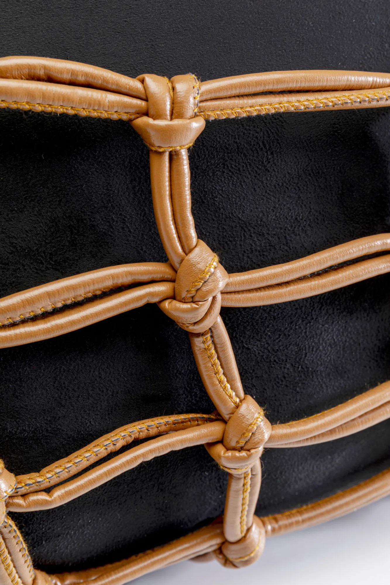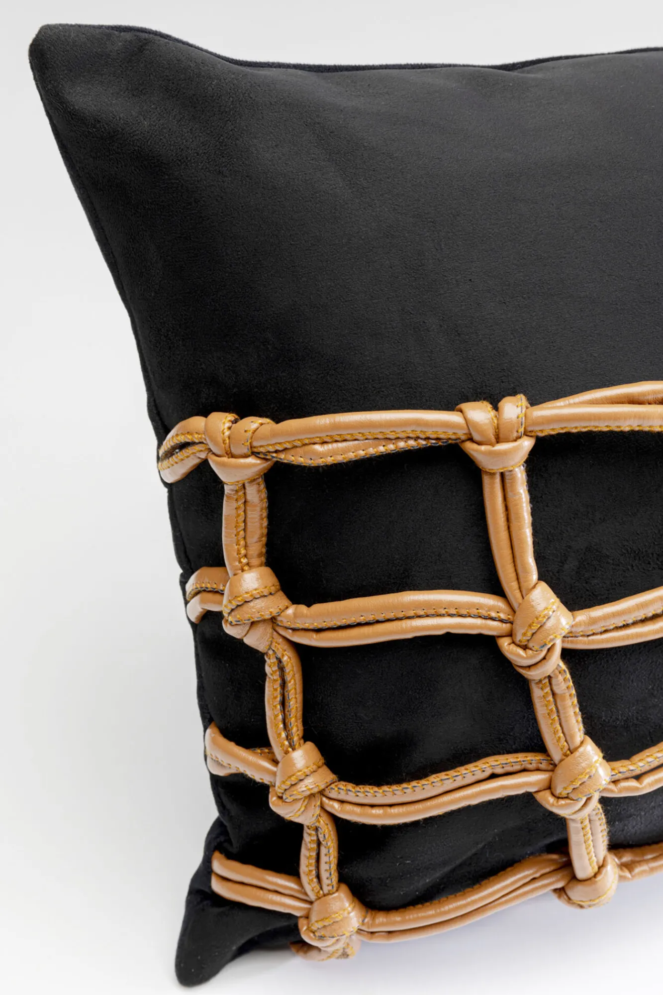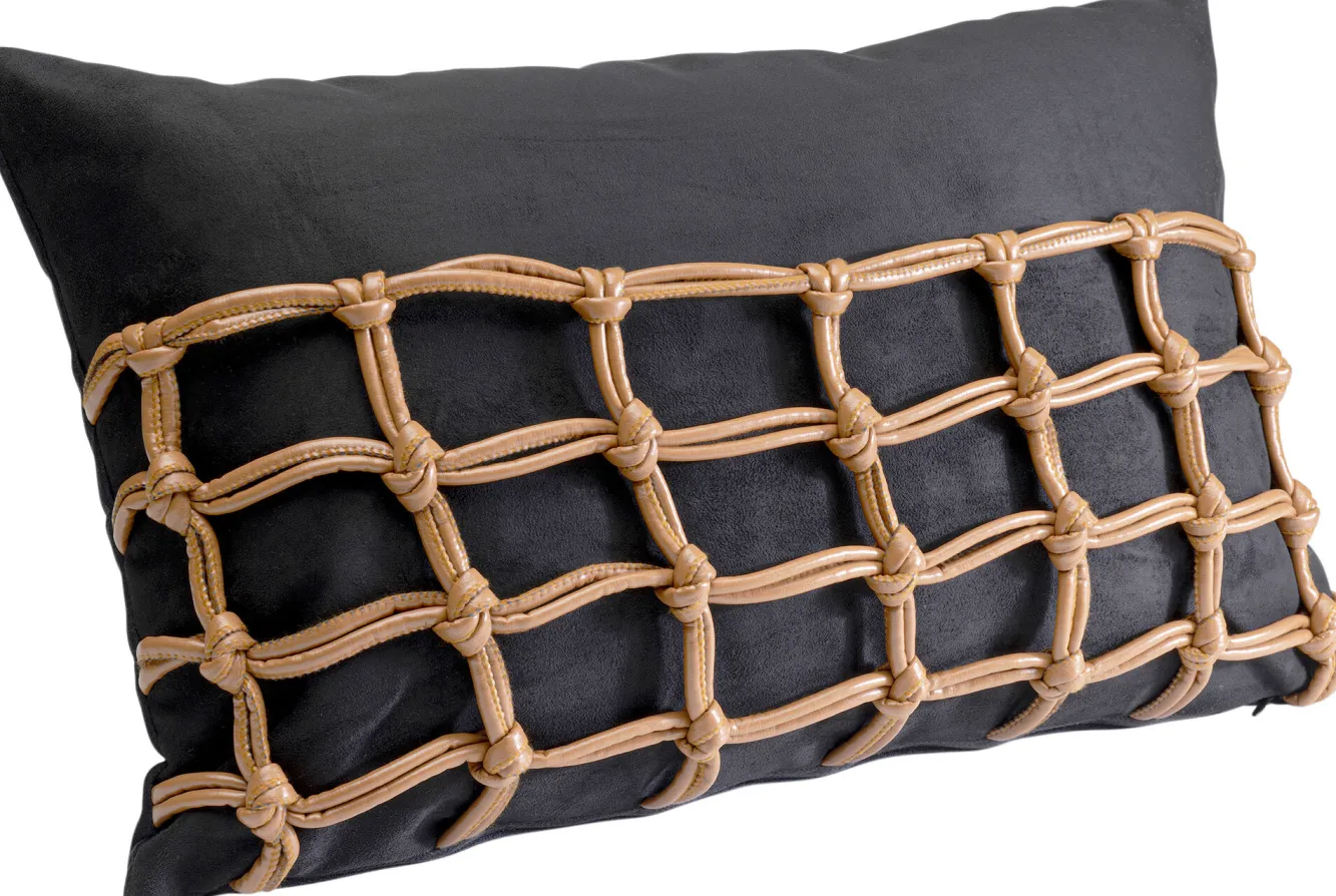 Poduszka dekoracyjna czarna 50×30 cm plecionka brązowa