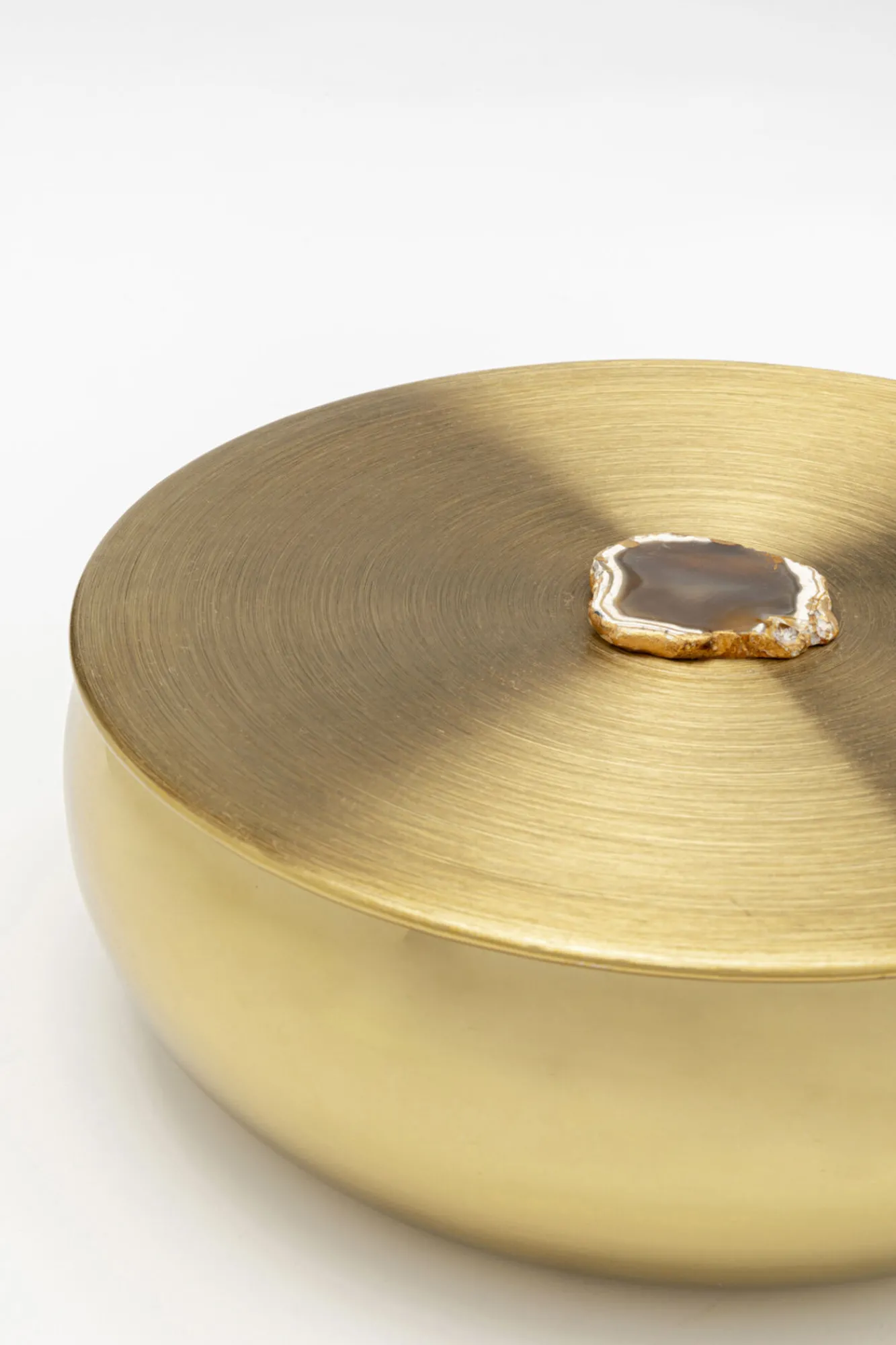 Pudełko na biżuterię złote kamień ozdobny agat Ø24 cm Pudełko: stal emaliowana.Pokrywka: stal mosiężna.Kamień …