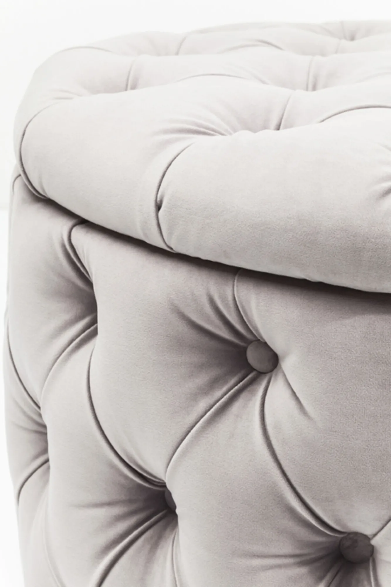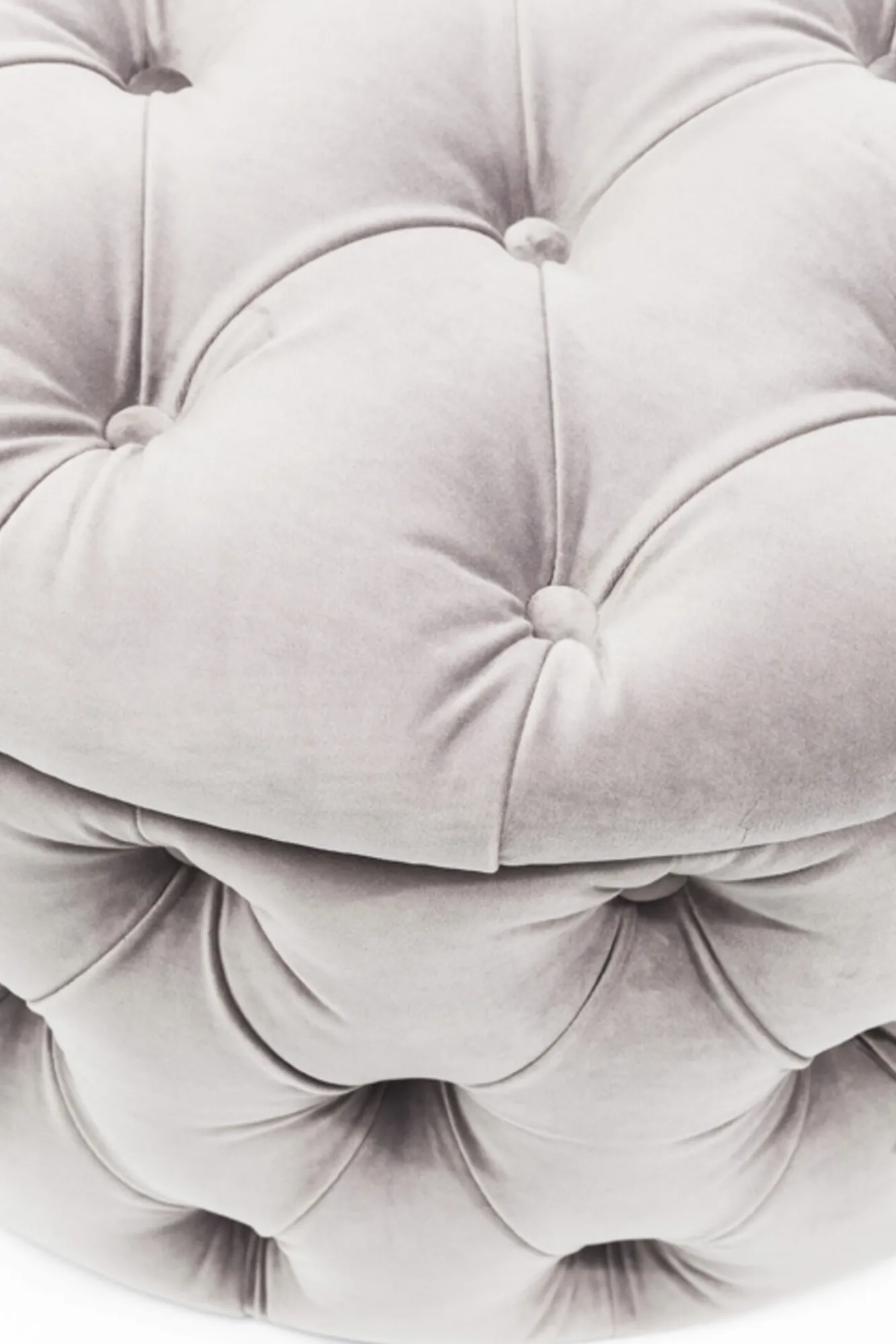 Szara pikowanapufa Desire, to kolejny ciekawy projekt od niemieckiej marki KARE. Okrągłe,piankowe siedzisko w kolorze srebrnym wykonane jest z przyjemnego aksamitu ipoliestru. Rama wykonana jest z drewna buku.