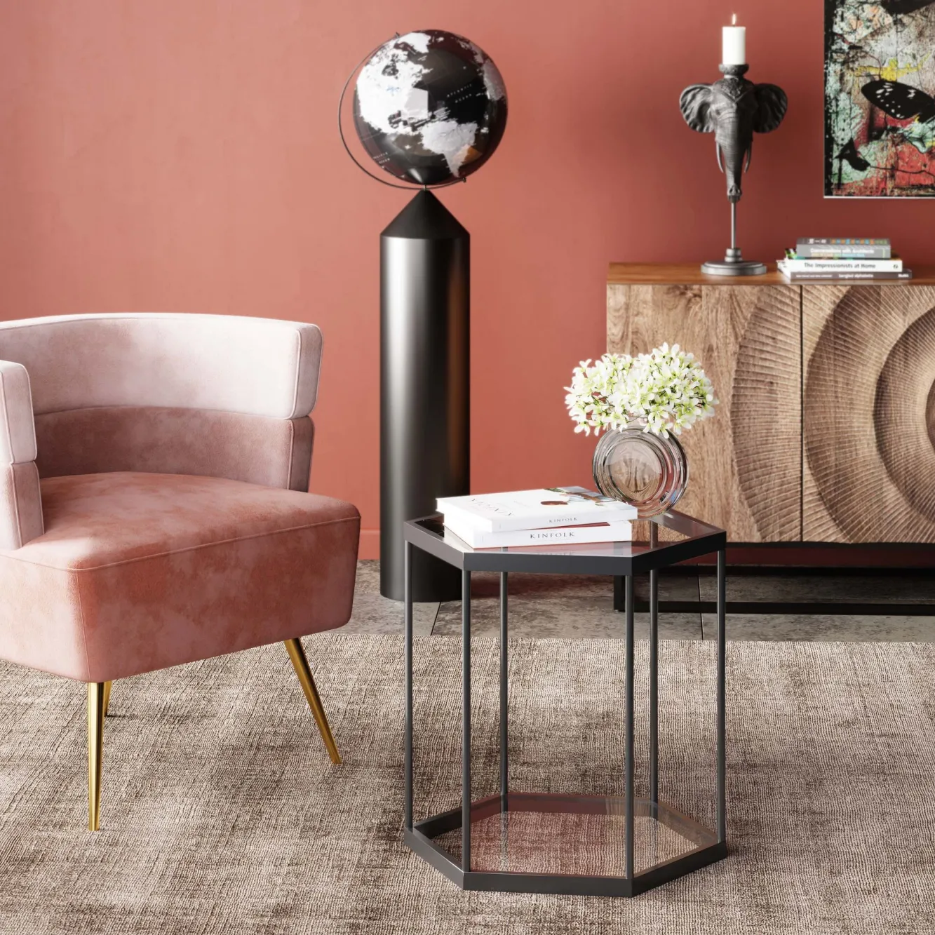 Stolik kawowy Comb 55xH55 cm czarny – blat szklany