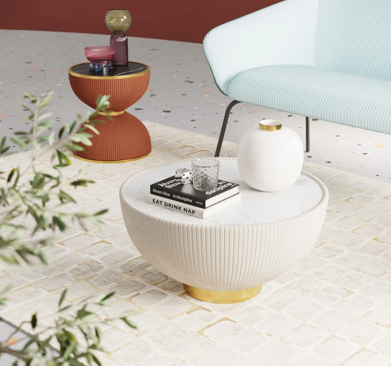 Stolik kawowy okrągły biały podstawa złota Ø71 cm