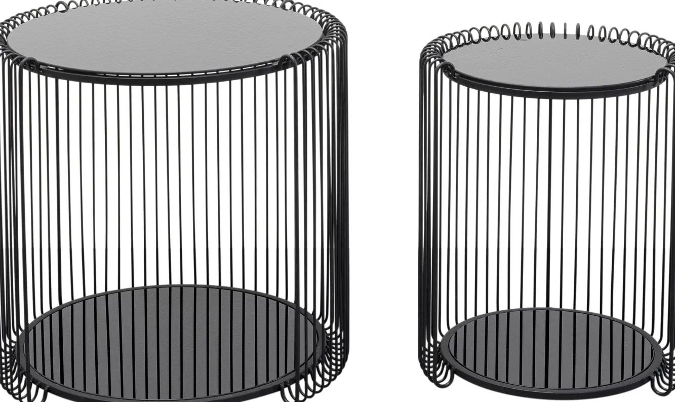 Zestaw 2 stolików pomocniczych czarnych blaty i półki szklane rama stalowa Podane wymiary dotyczą większego stolika…