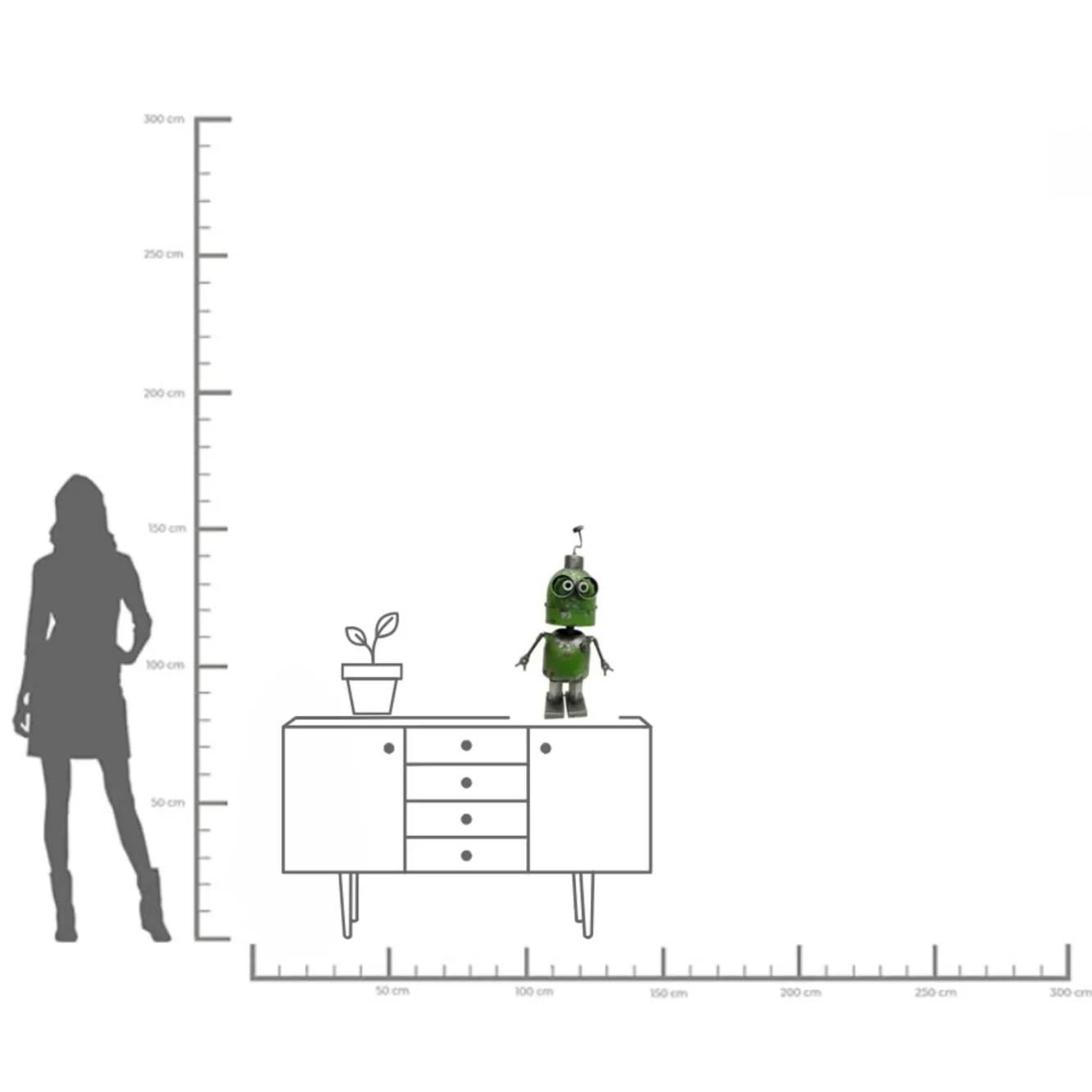 Dekoracja stojąca stalowa postarzana robot Peter 71 cm