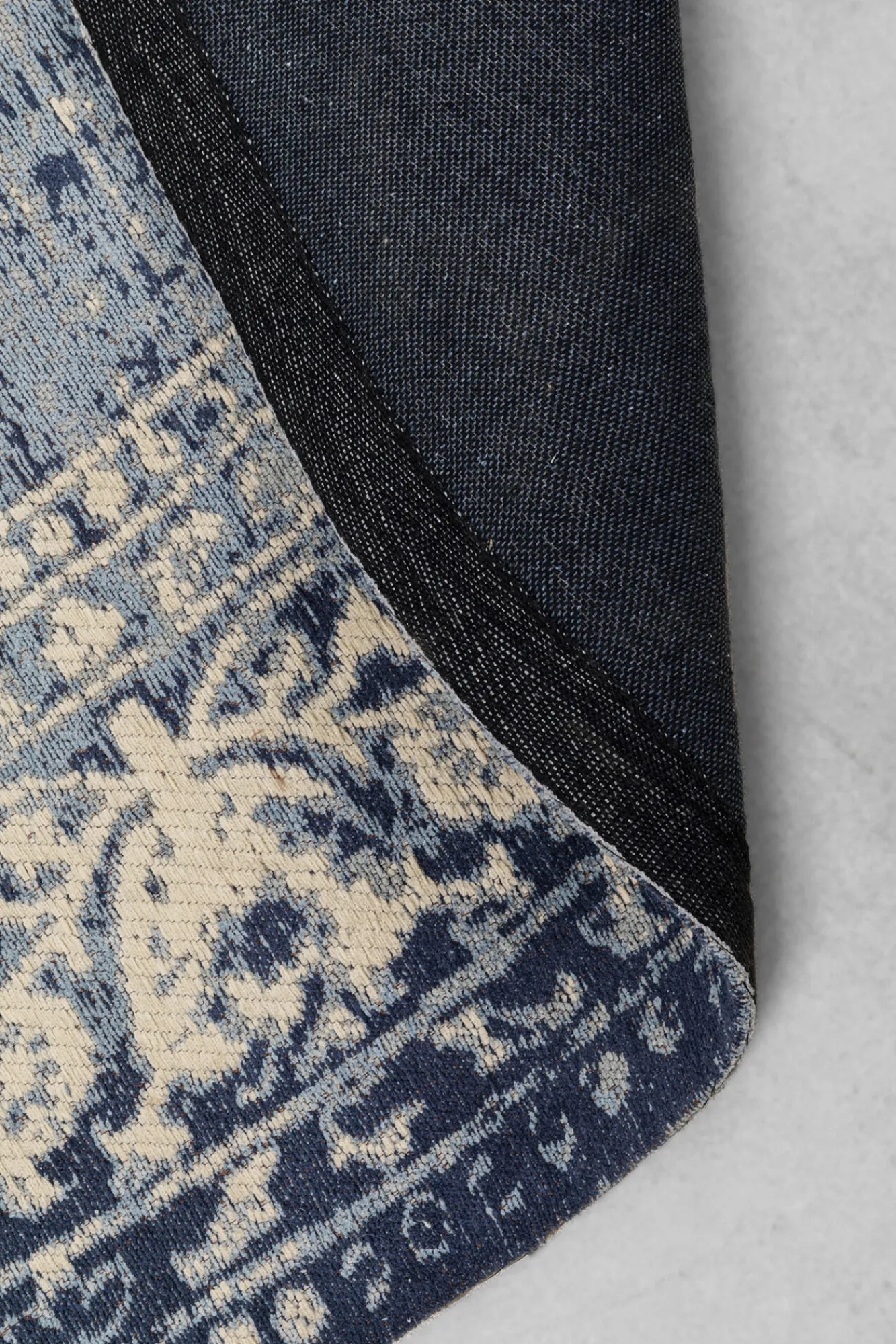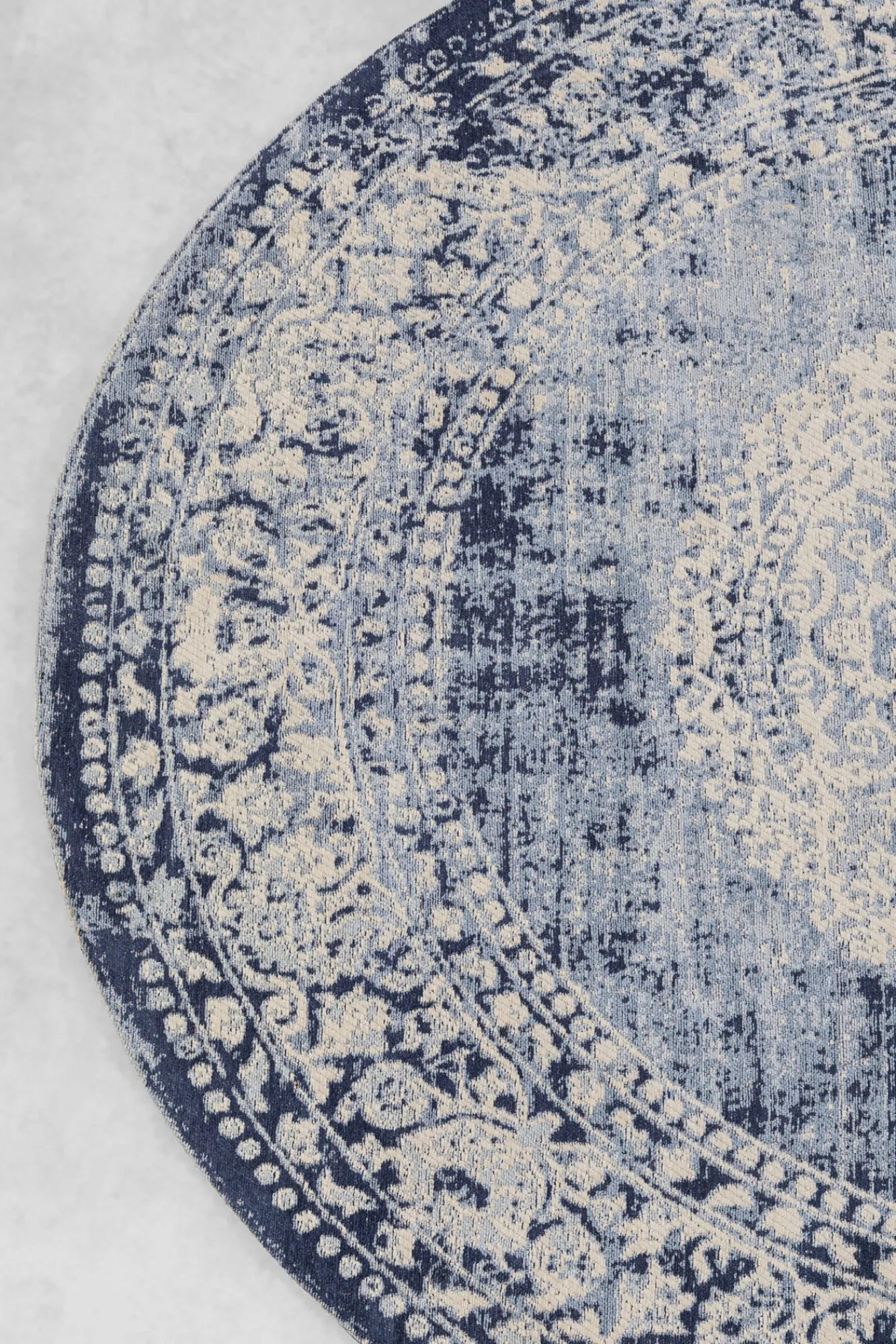 Dywan okrągły do salonu niebieski vintage Ø200 cm Góra: 90% bawełna, 10% poliester.Spód: 100% bawełna.