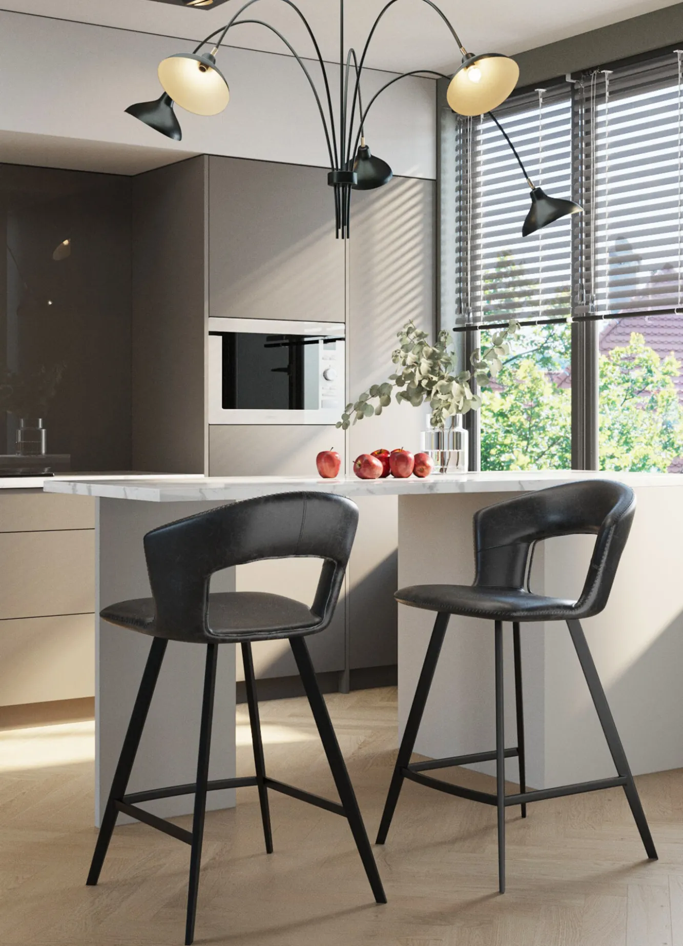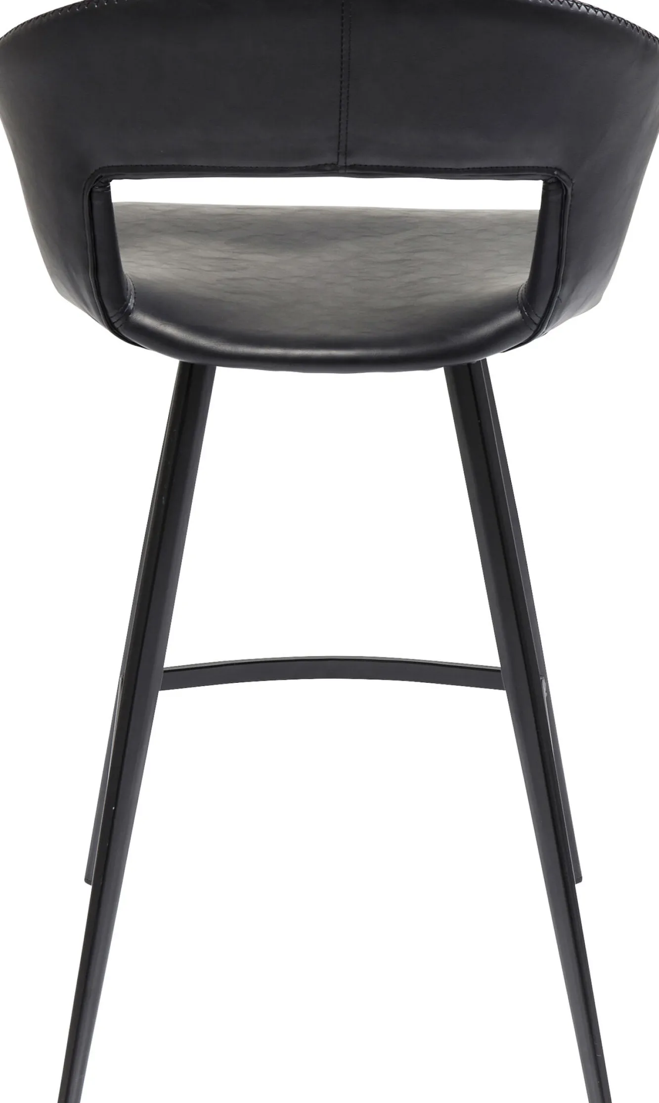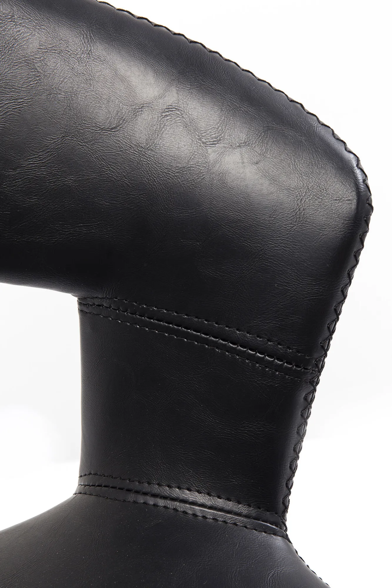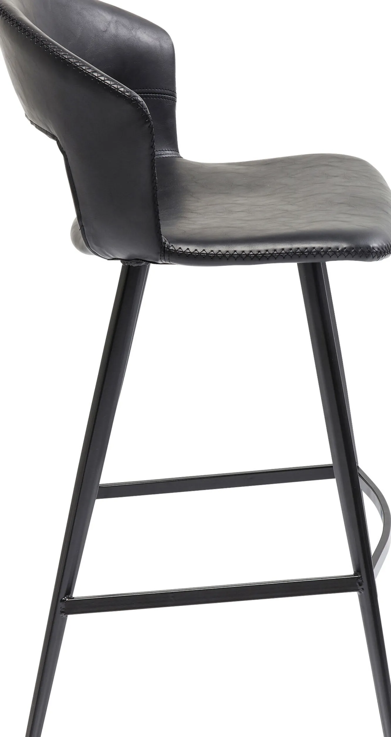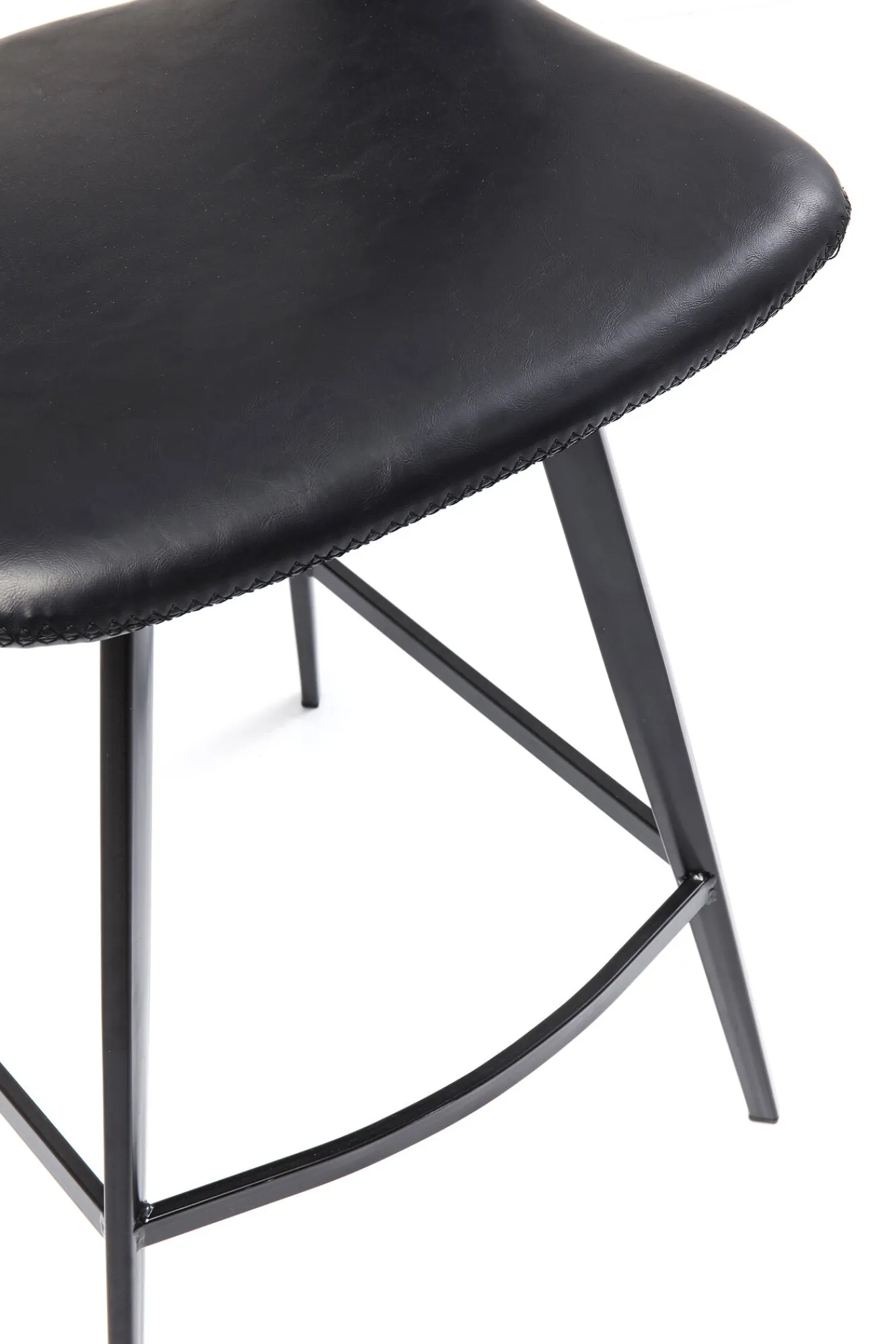 Seria czarnych mebli w stylu industrialnym Reunion oferuje kilka rodzajów elementów wyposażenia wnętrza – tutaj hoker z ekoskóry w kolorze czarnym na stalowych nogach.