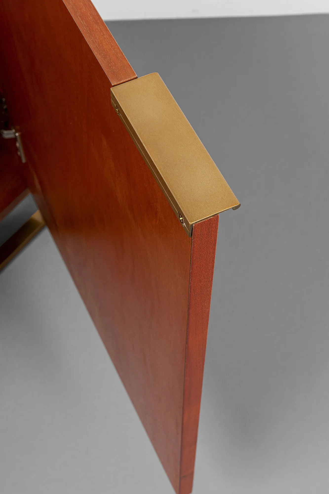 Komoda 3-drzwiowa fornir orzechowy nogi złote stalowe 160×78 cm front efekt 3D