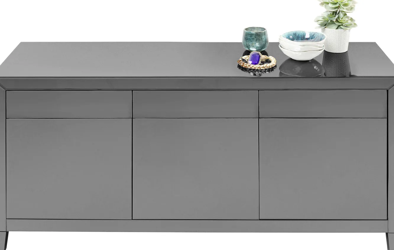 Komoda Luxury Push 141×77 cm szara Korpus: MDF.Panele: szkło.Nóżki do samodzielnego montażu.