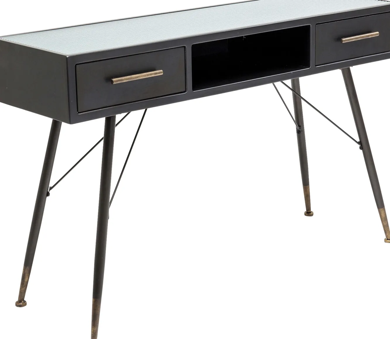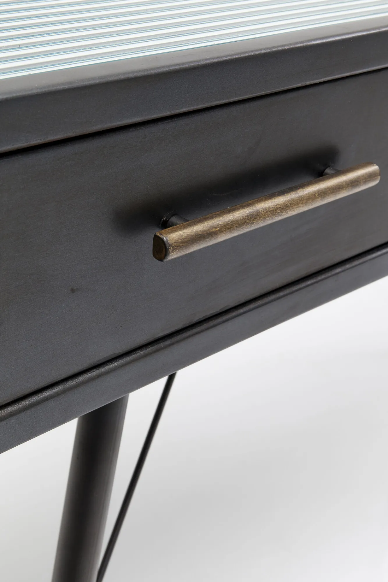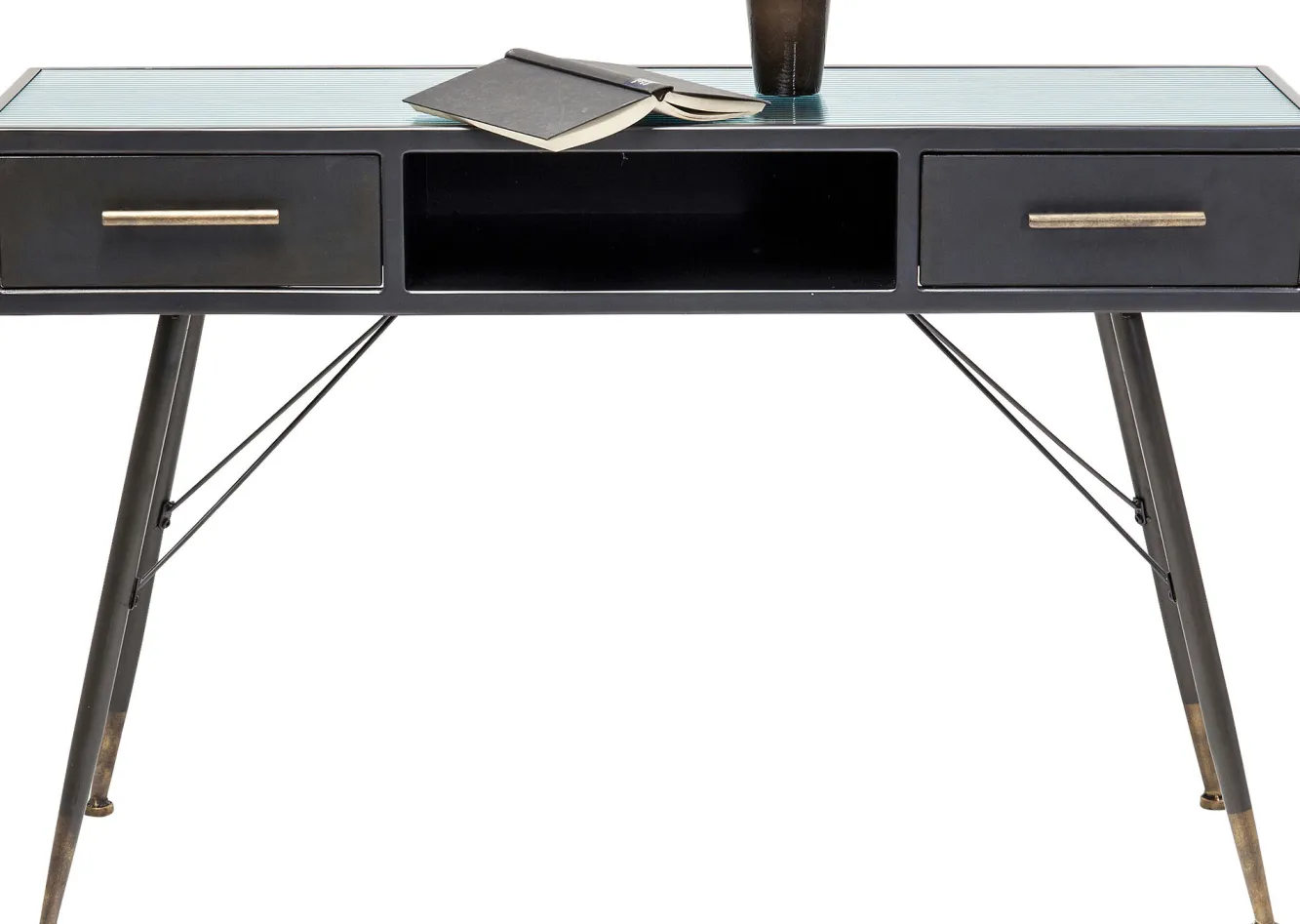 Nowoczesna grafitowa konsola w stylu industrialnym La Gomera trafiła do naszej oferty za sprawą ikony współczesnego designu, firmy KARE. Niemiecka marka słynie z wyrafinowanego wzornictwa i niepodrabialnej estetyki, co sprawia, że jej projekty nigdy nie dadzą się sobą znudzić. Tutaj producent oddaje do dyspozycji model zbudowany ze stali, płyty MDF i hartowanego szkła. Stalowe uchwyty oraz okucia nóg o postarzanym, stylizowanym na vintage charakterze, dodają meblowi szlachetności. Prezentowana konsola vintage z lekka kierując aranżację w rejony loftowe, dzięki uniwersalnej kolorystyce, poradzi sobie w dowolnej współczesnej koncepcji wnętrzarskiej.