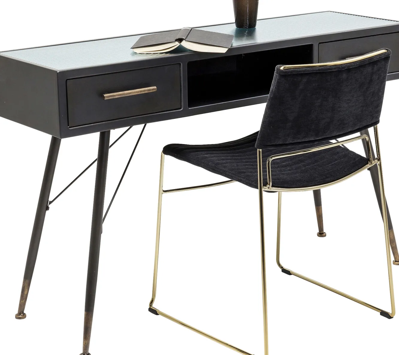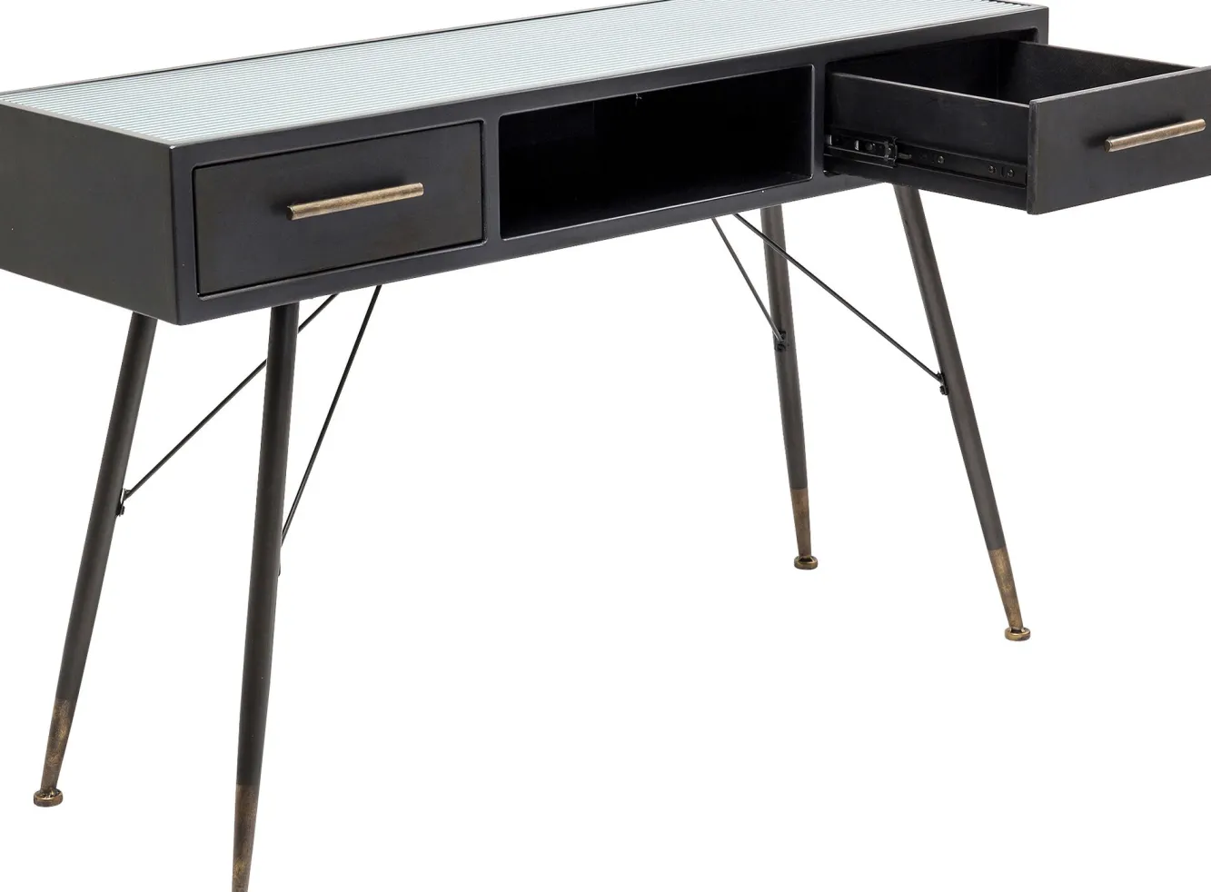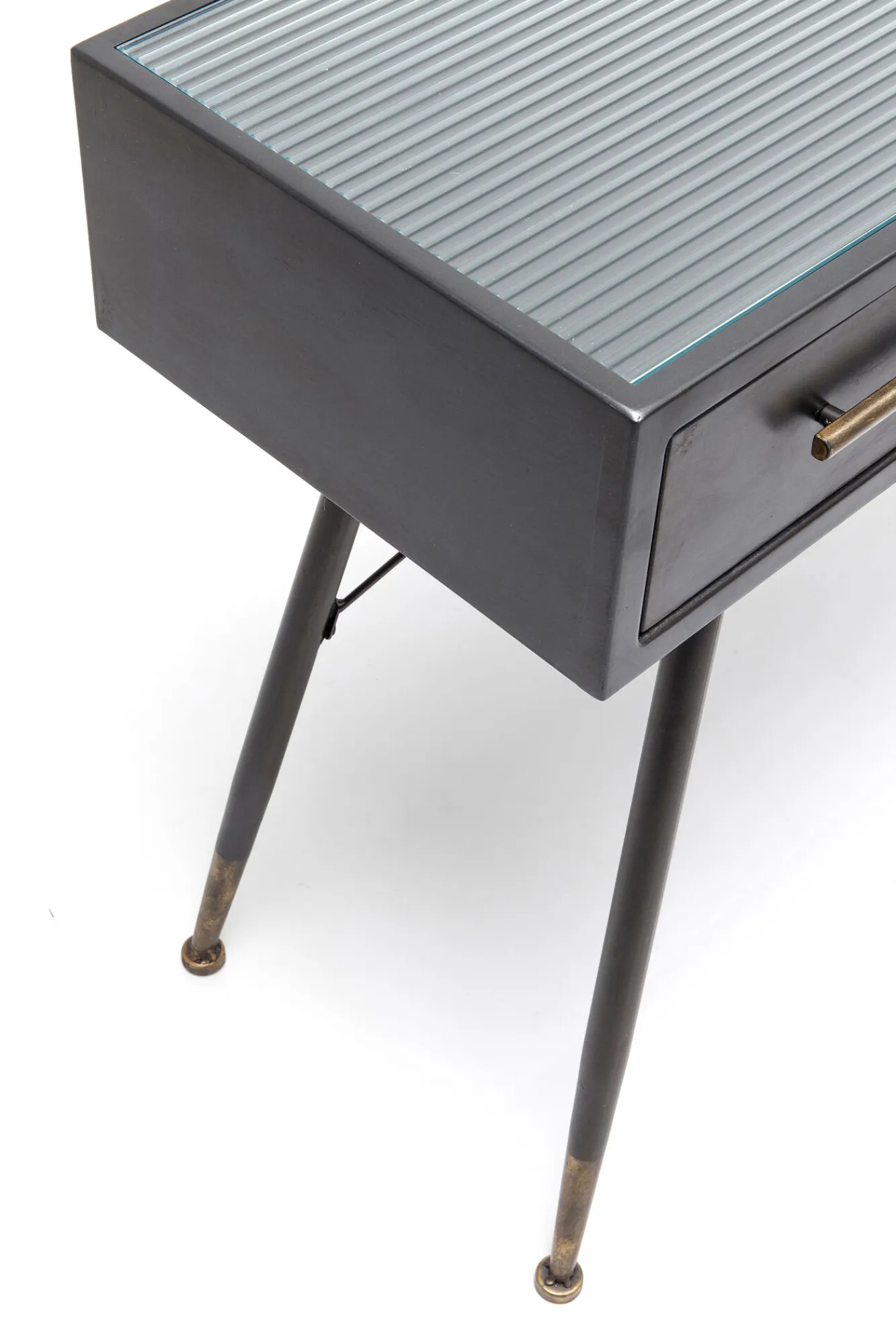 Nowoczesna grafitowa konsola w stylu industrialnym La Gomera trafiła do naszej oferty za sprawą ikony współczesnego designu, firmy KARE. Niemiecka marka słynie z wyrafinowanego wzornictwa i niepodrabialnej estetyki, co sprawia, że jej projekty nigdy nie dadzą się sobą znudzić. Tutaj producent oddaje do dyspozycji model zbudowany ze stali, płyty MDF i hartowanego szkła. Stalowe uchwyty oraz okucia nóg o postarzanym, stylizowanym na vintage charakterze, dodają meblowi szlachetności. Prezentowana konsola vintage z lekka kierując aranżację w rejony loftowe, dzięki uniwersalnej kolorystyce, poradzi sobie w dowolnej współczesnej koncepcji wnętrzarskiej.