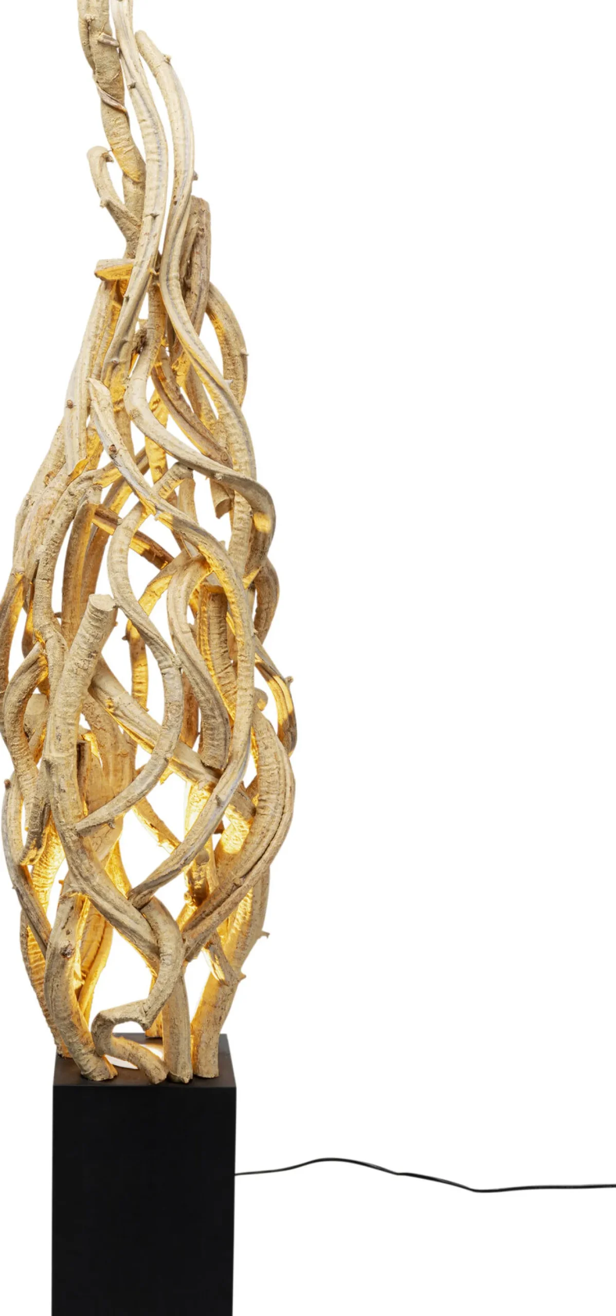 Lampa podłogowa naturalna drewniana 150 cm podstawa czarna