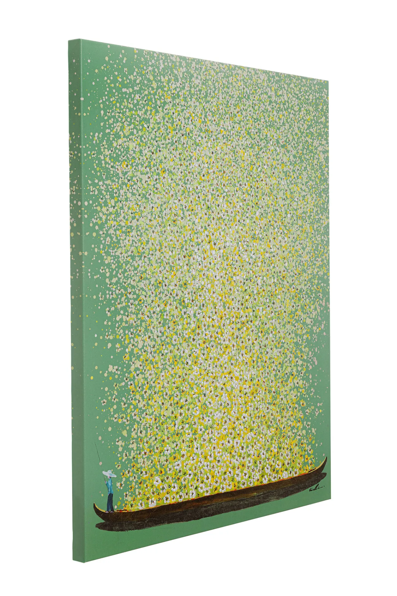 Obraz łódź i białe kwiaty 80×100 cm zielone tło Nadruk na płótnie bawełnianym.Rama: drewno świerkowe.Obraz czę…
