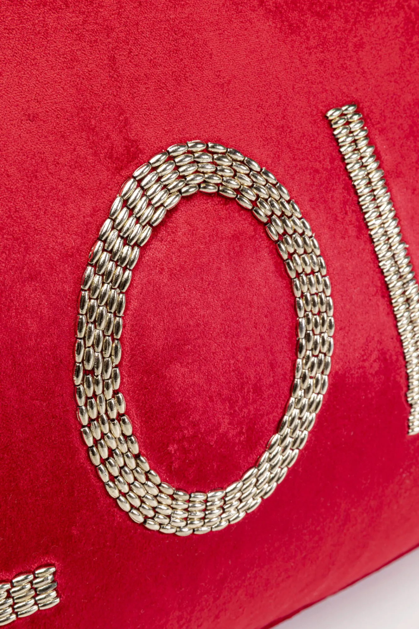 Poduszka dekoracyjna czerwona aksamitna z napisem Love 60×35 cm