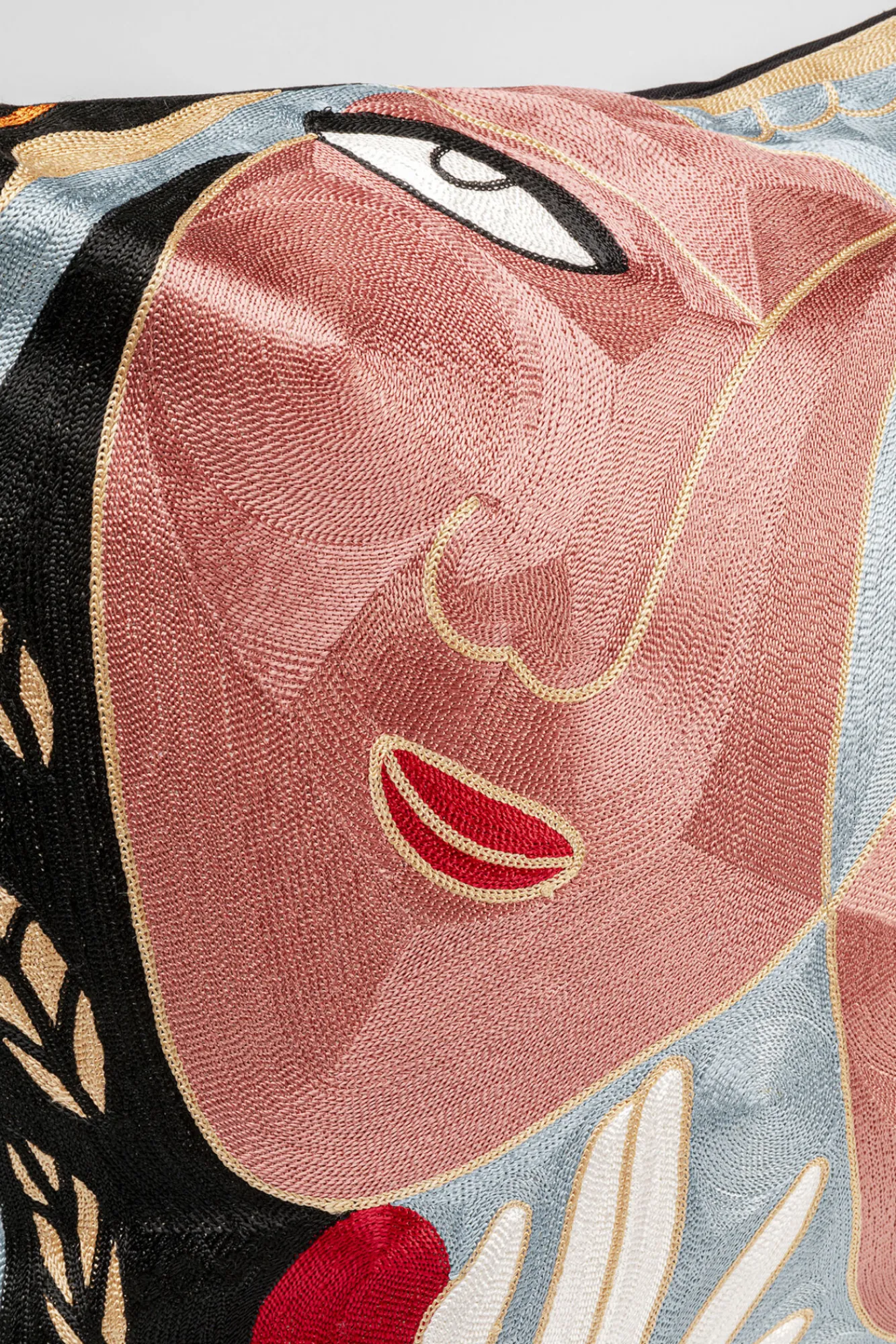 Poduszka dekoracyjna kolorowa kwadratowa motyw twarzy 50×50 cm