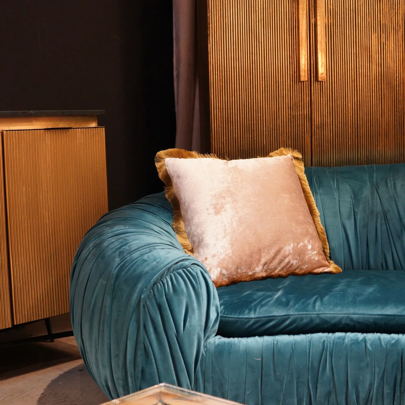 Poduszka dekoracyjna z frędzlami 45×45 cm beżowa