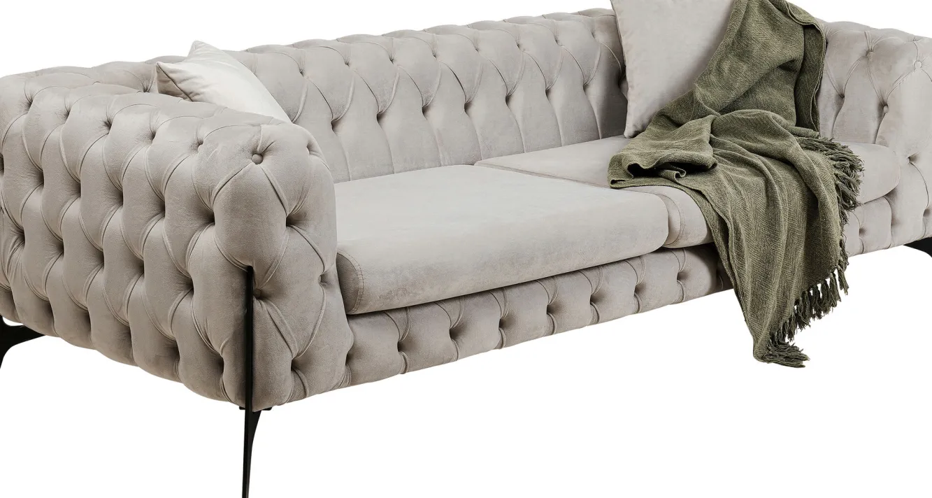 Sofa 3-osobowa welurowa pikowana beżowa glamour 240 cm nogi czarne