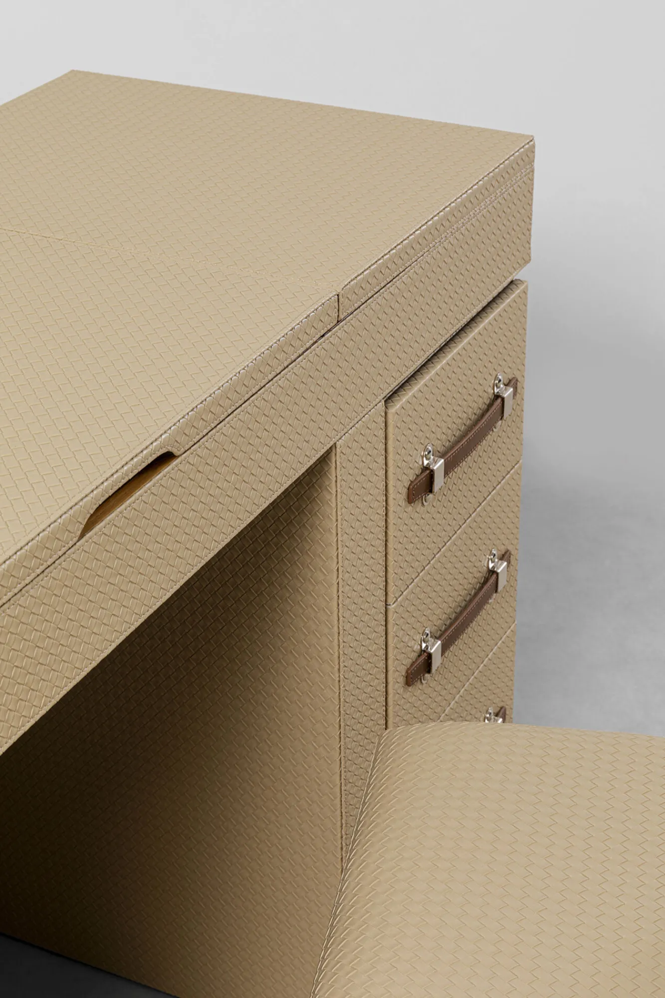Materiały: płyta MDF, sklejka jesionowa fornirowana, stal cynkowana, ekoskóra (PU), lustro.