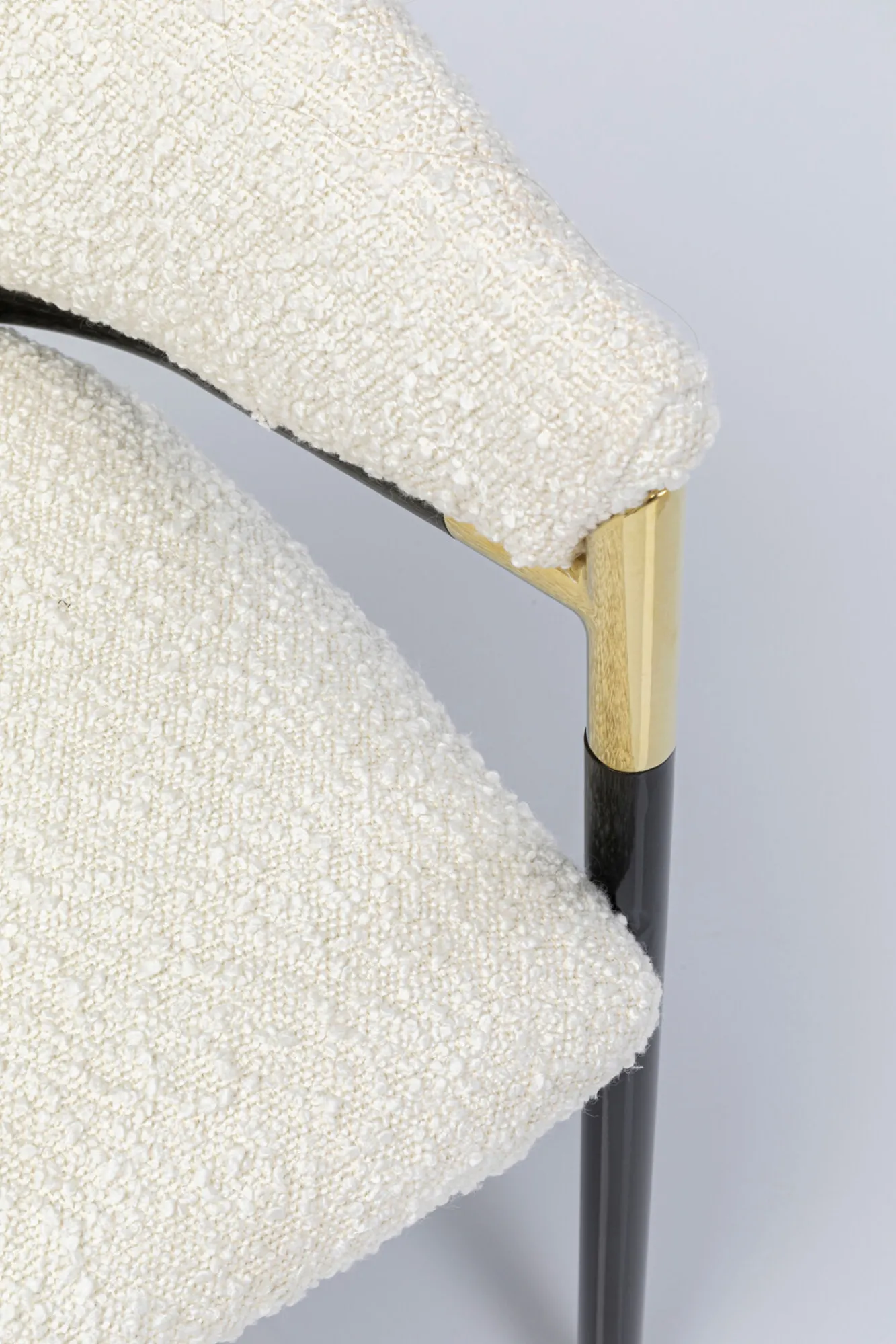 Krzesło z podłokietnikami tapicerowane białe boucle nogi stalowe czarne 58×79 cm Rama, nogi: stal malowana proszkowo….
