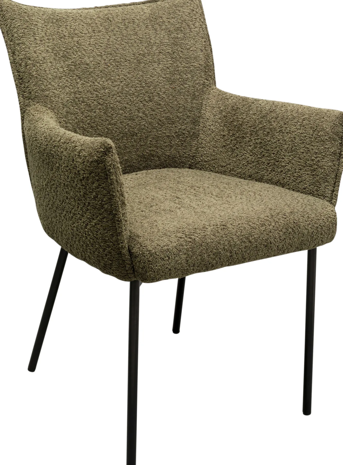 Krzesło z podłokietnikami zielone z czarnymi nogami 60×87 cm Tapicerka: 100% poliester.Wypełnienie: pianka poliuretan…