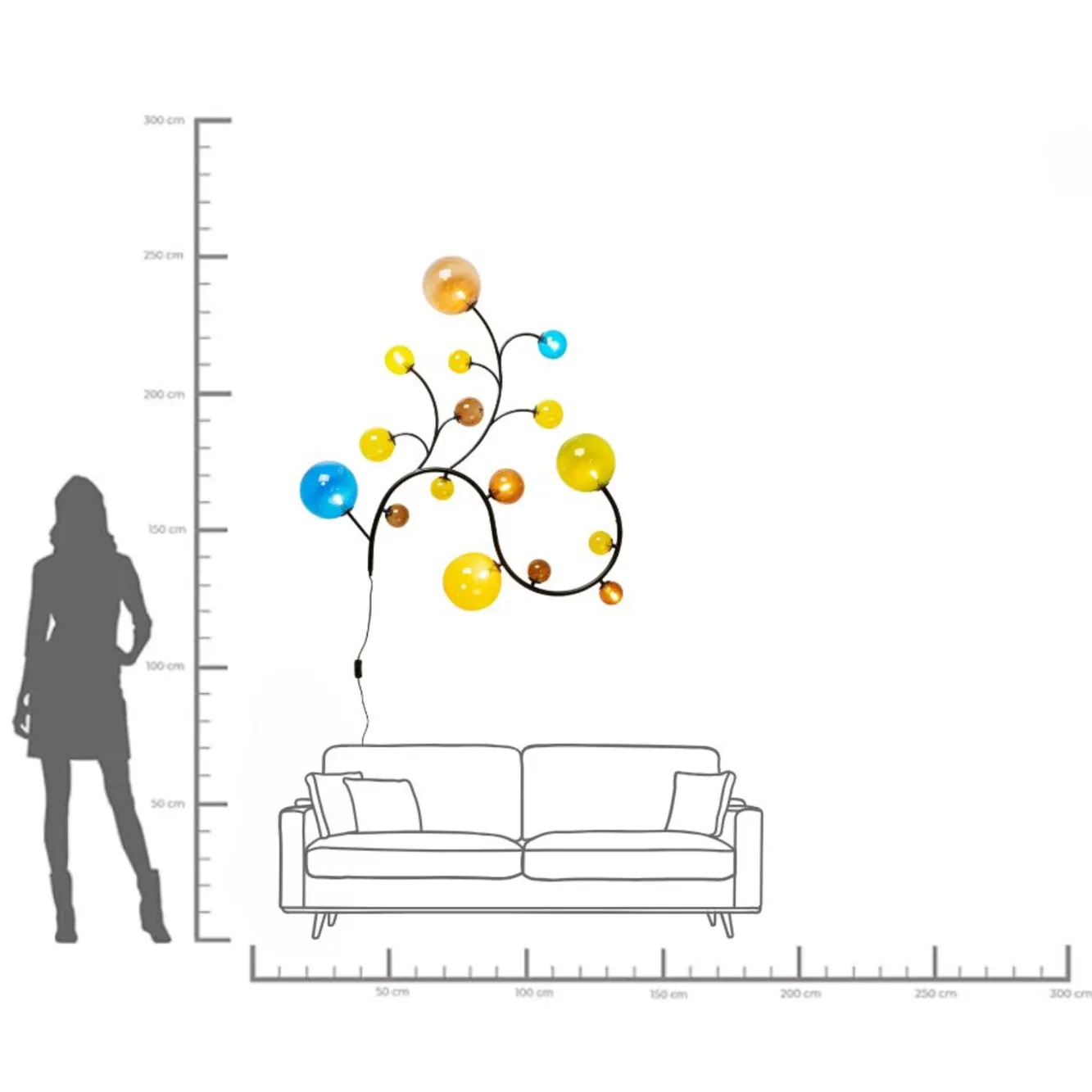 Lampa ścienna czarna klosze kolorowe 185×110 cm Stelaż: stal malowana proszkowo.Klosze: szkło barwione.Średnica klos…