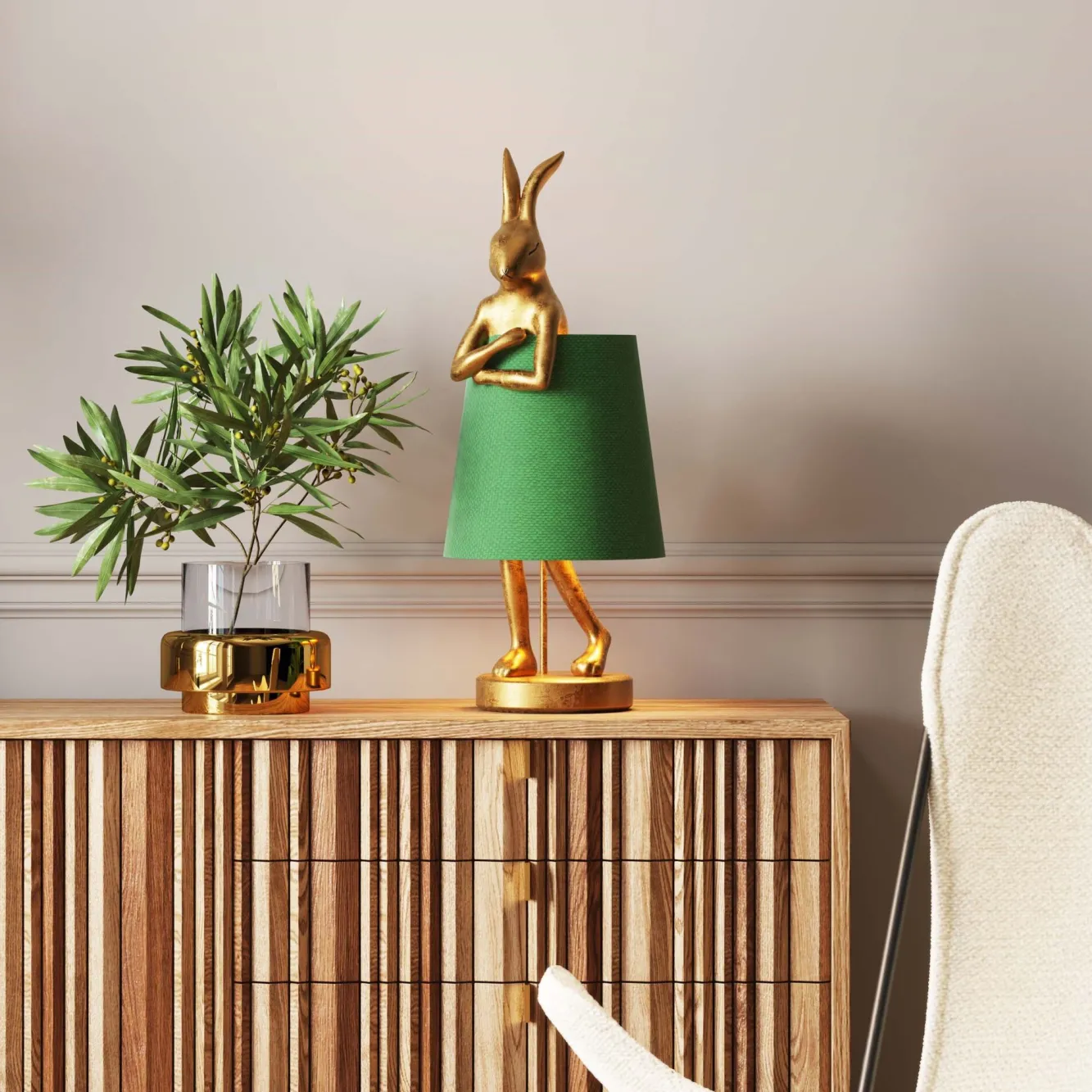 Lampa stołowa Animal Rabbit 23×68 cm złota – klosz zielony