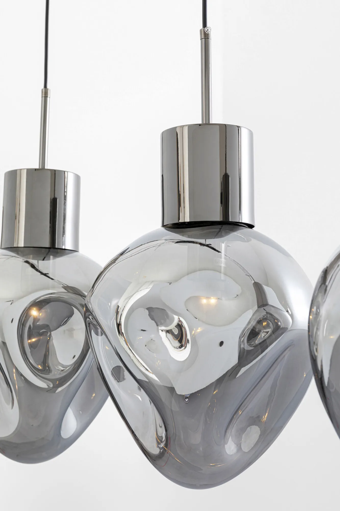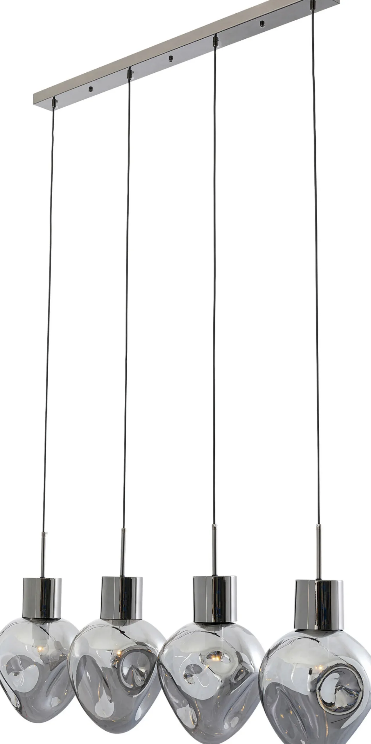 Lampa wisząca przydymiona 4L stal i szkło 110 cm Materiały: stal z wykończeniem chromowanym, szkło galwanizowane.Wy…