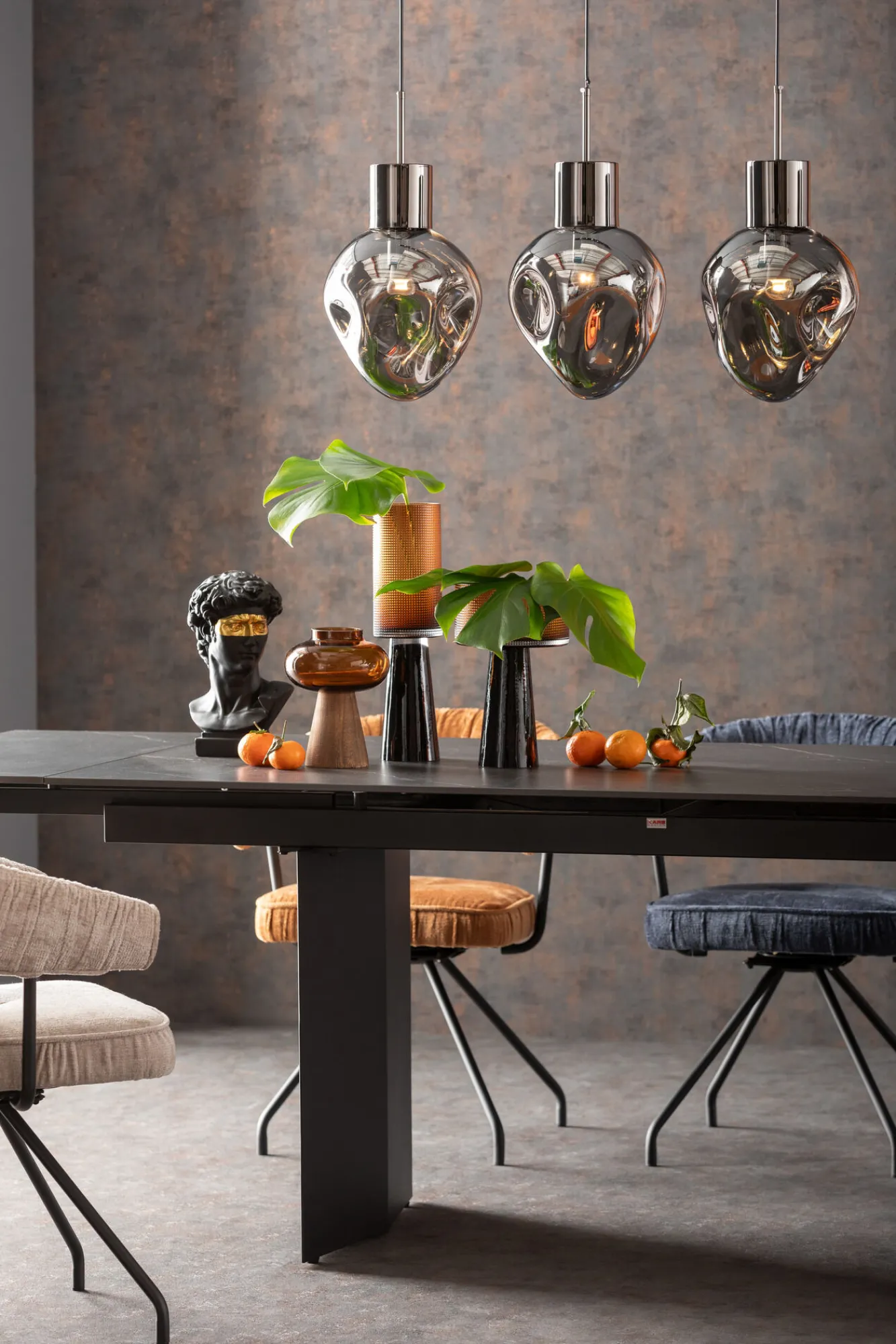 Lampa wisząca przydymiona 4L stal i szkło 110 cm