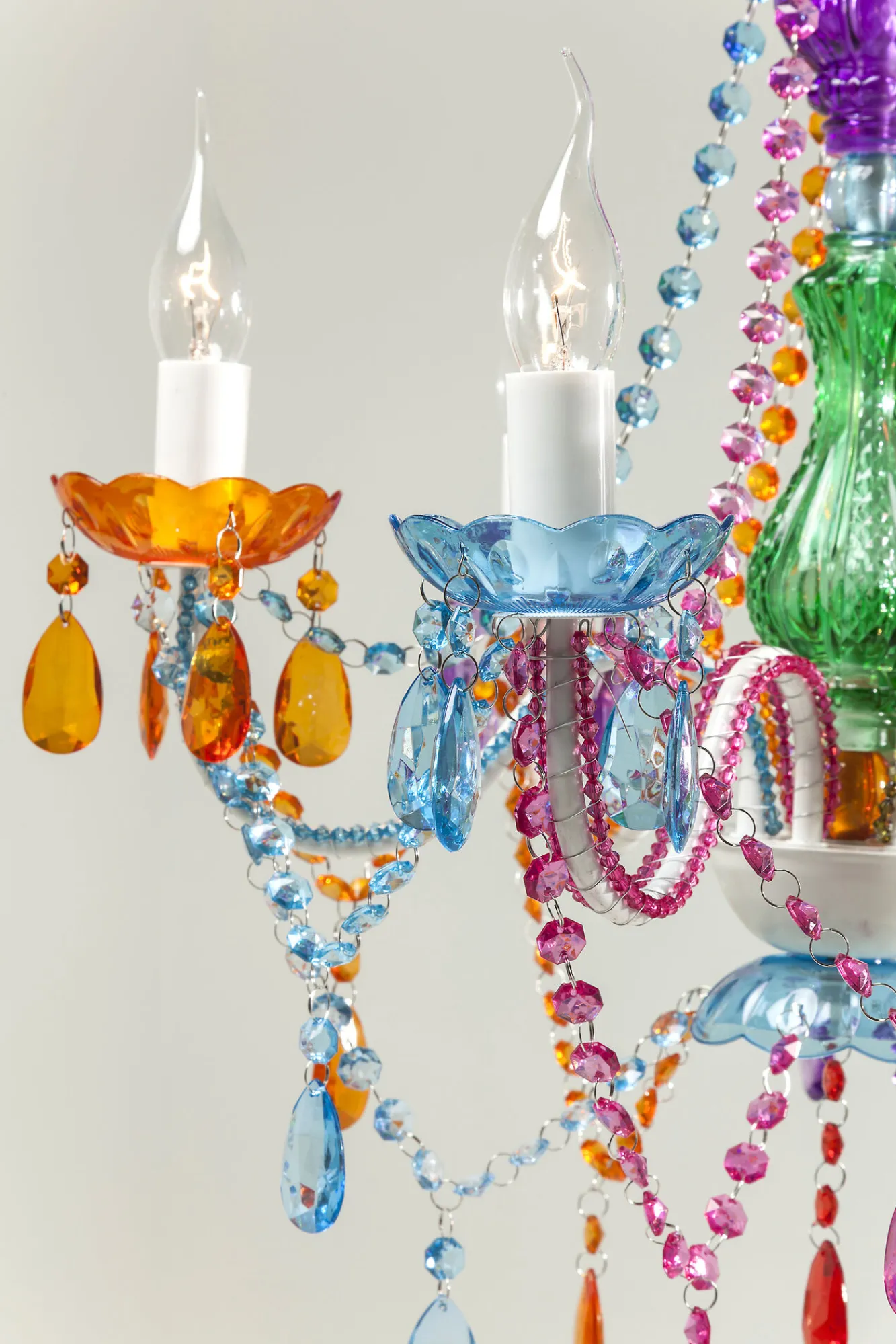 Modny żyrandol we wszystkich kolorach tęczy – barokowa symfonia w formie stylowej lampy wiszącej z mnóstwem bogatych detali. Lampa w stylu żyrandola, w odświeżającym jazzowym stroju z indywidualną kolorystyką. Wiele akrylowych diamentów dynda elegancko i błyszczą jaskrawo, tworząc magiczne efekty koloru i światła, gdy lampa jest włączona. Ale nawet gdy nie jest włączony, lampa wisząca Starlight Rainbow jest efektownym przyciągaczem oczu, który doda niekonwencjonalnego, żywego dotyku każdemu otoczeniu.Dane techniczne:-Klasa energetyczna A-E-230V-50/60Hz-Gwint E14-Ilość żarówek: 6 szt.-Max. 40WZestaw nie zawiera żarówek. Modny żyrandol we wszystkich kolorach tęczy – barokowa symfonia w formie stylowej lampy wiszącej z mnóstwem bogatych detali. Lampa w stylu żyrandola, w odświeżającym jazzowym stroju z indywidualną kolorystyką. Wiele akrylowych diamentów dynda elegancko i błyszczą jaskrawo, tworząc magiczne efekty koloru i światła, gdy lampa jest włączona. Ale nawet gdy nie jest włączony, lampa wisząca Starlight Rainbow jest efektownym przyciągaczem oczu, który doda niekonwencjonalnego, żywego dotyku każdemu otoczeniu.Dane techniczne:-Klasa energetyczna A-E-230V-50/60Hz-Gwint E14-Ilość żarówek: 6 szt.-Max. 40WZestaw nie zawiera żarówek.