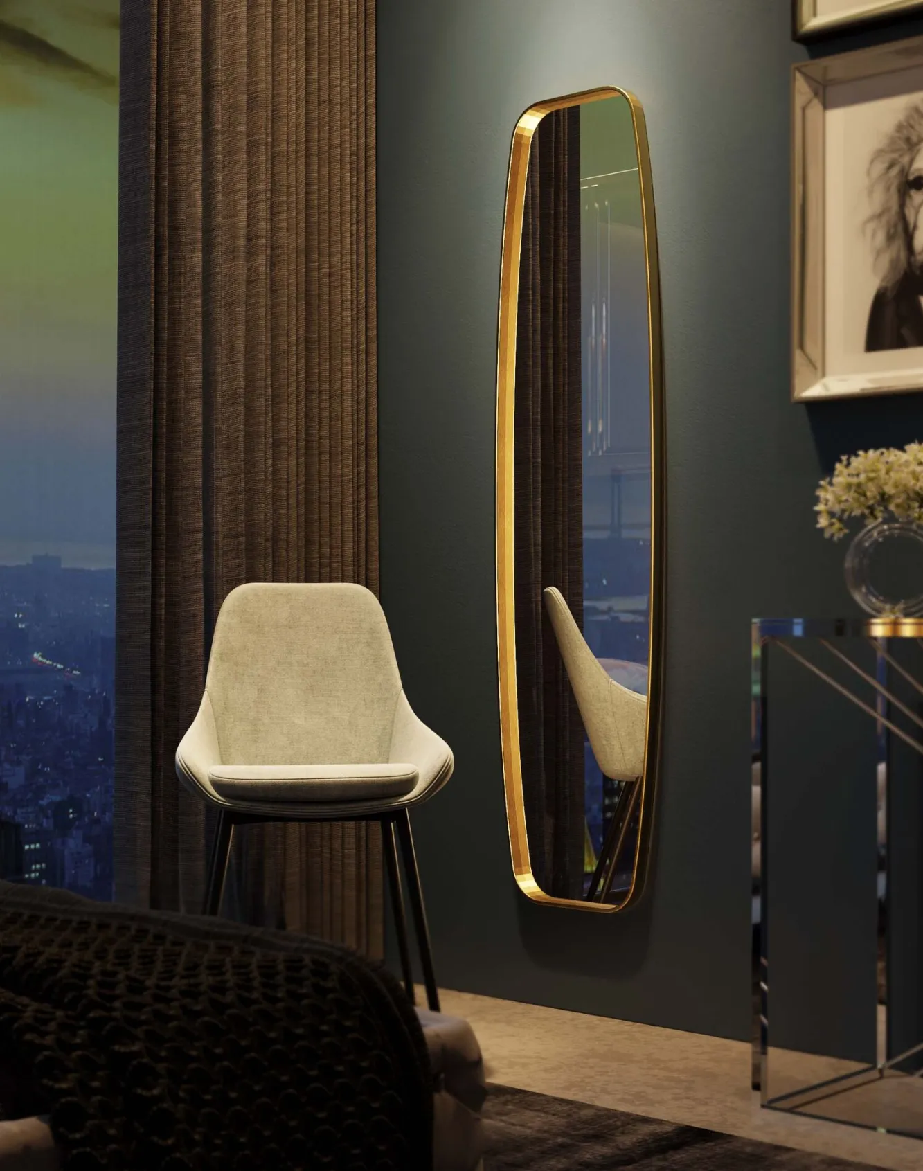 Lustro ścienne nowoczesne rama złota 40×160 cm Ręczne wykonanie. Każdy egzemplarz jest niepowtarzalny i unikatowy.