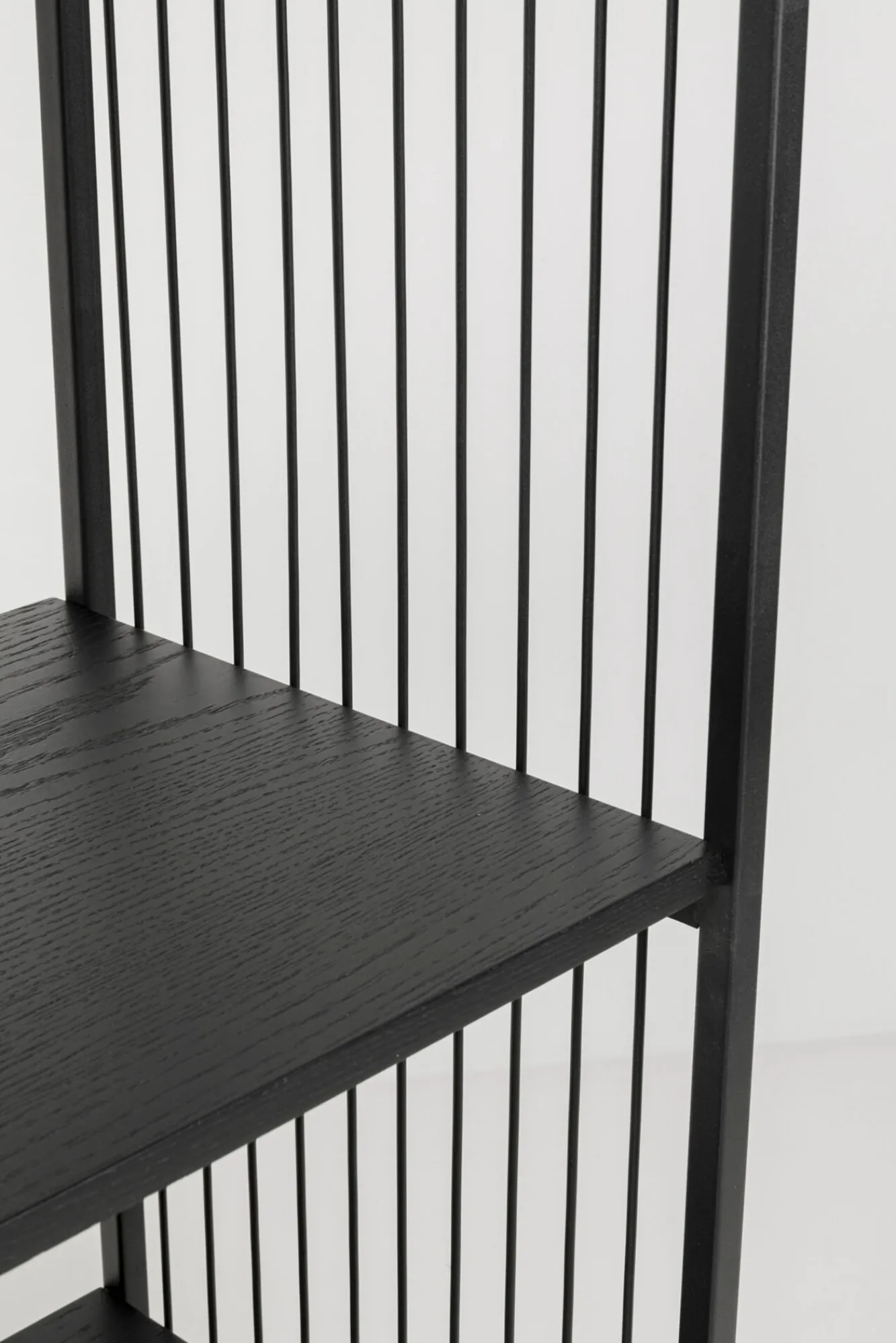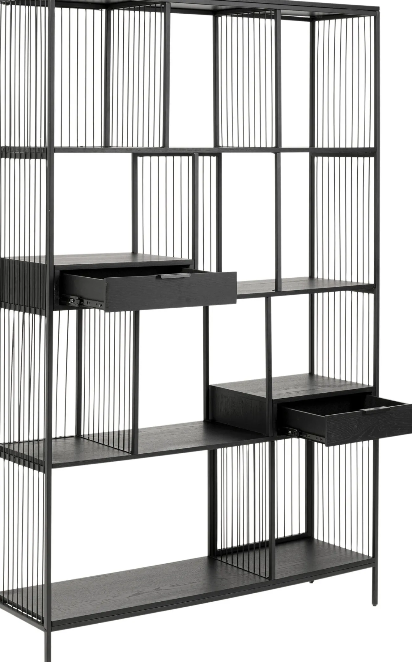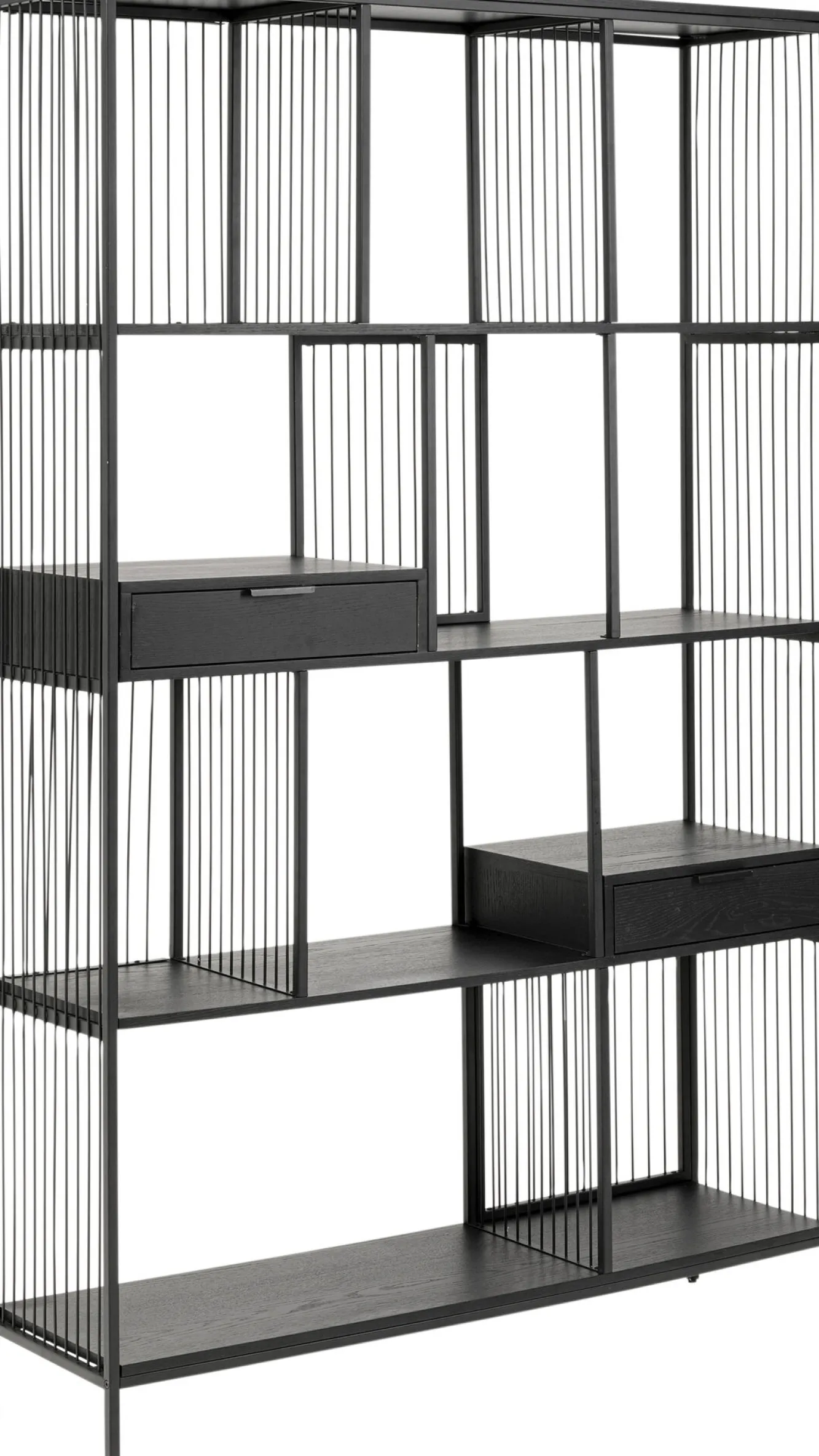 Regał stojący czarny z 2 szufladami fornir dębowy i stal 125×200 cm