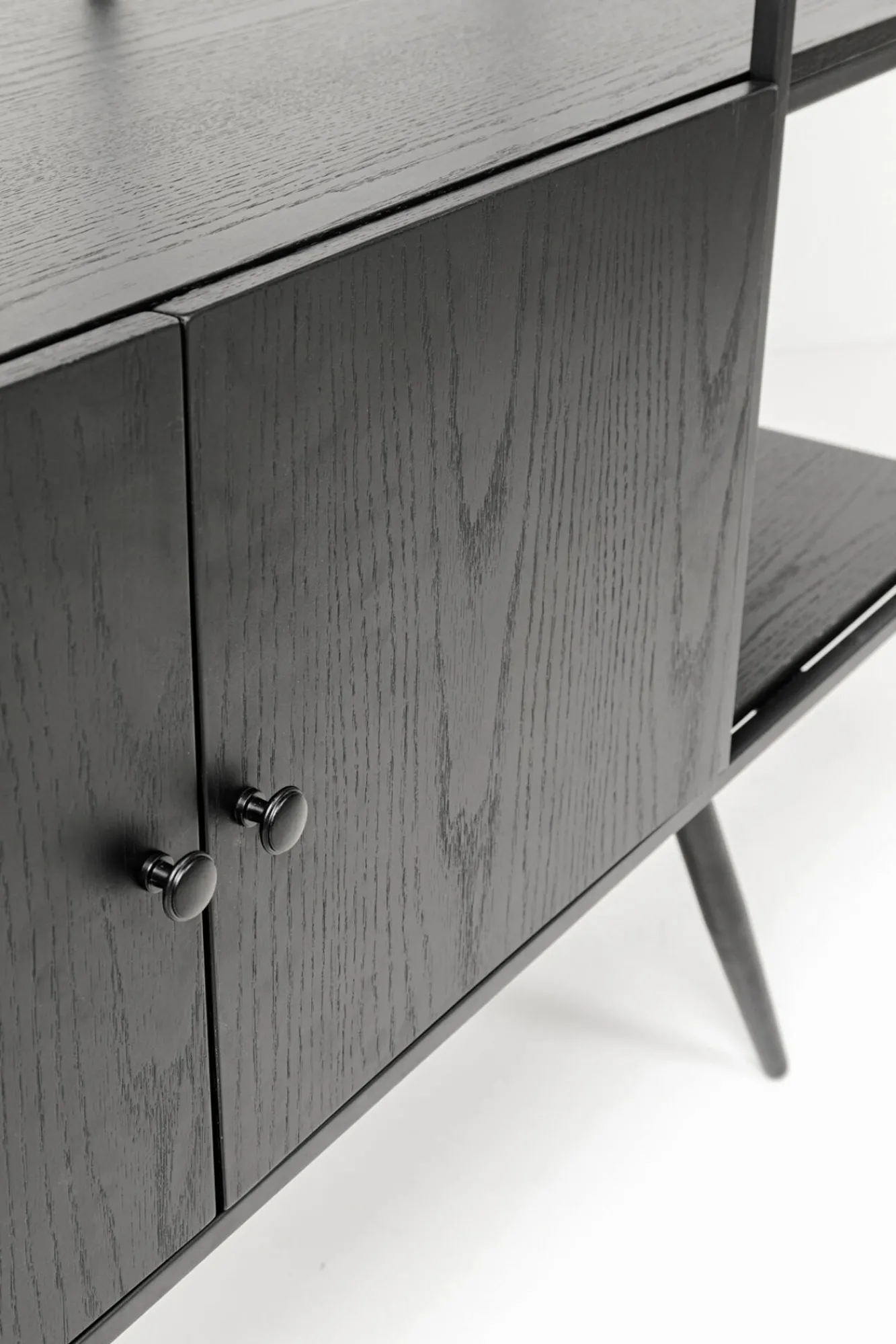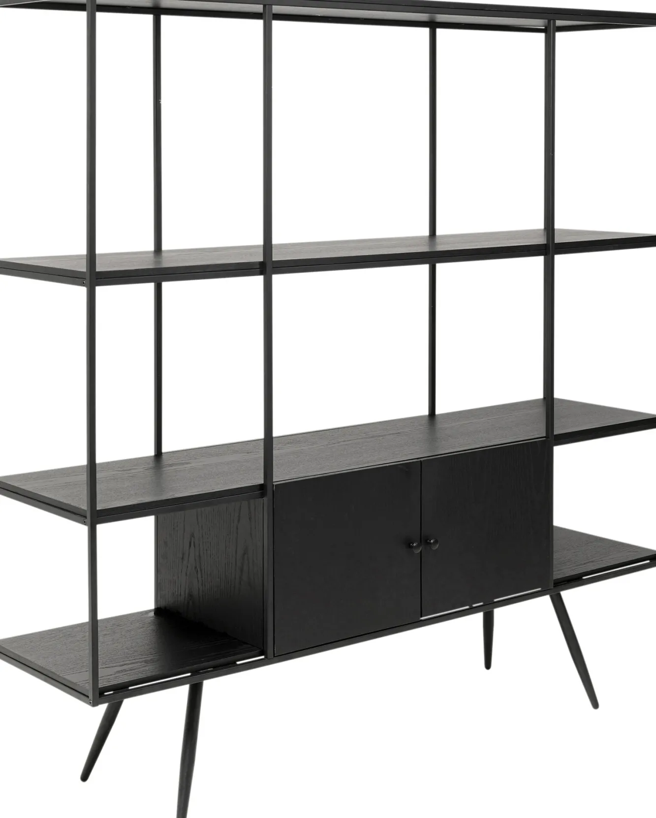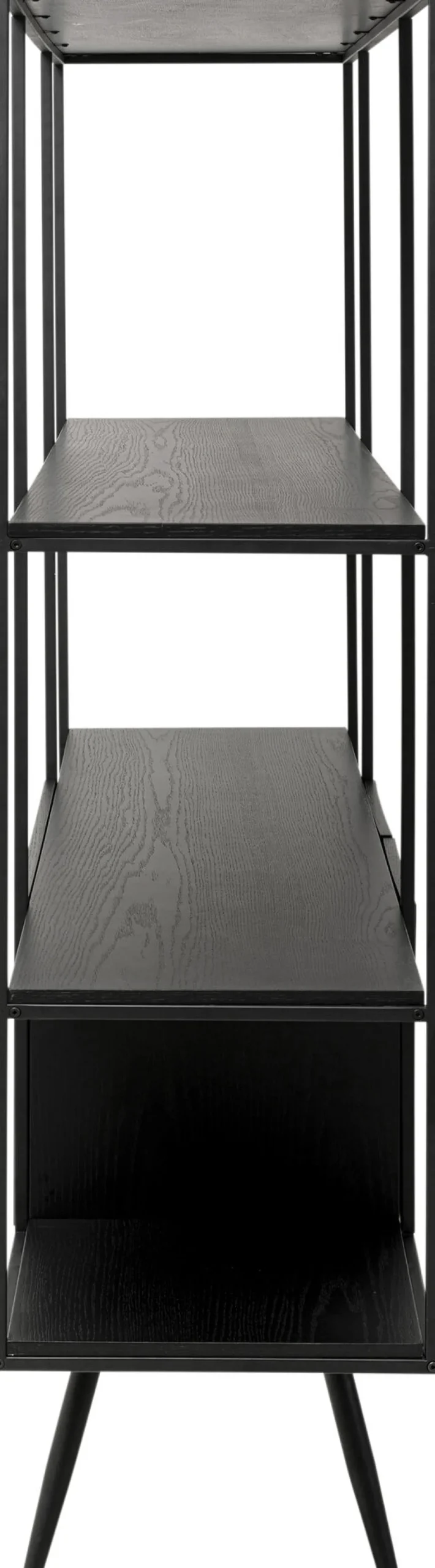 Regał ze schowkiem czarny półki fornir dębowy rama stalowa 180×183 cm