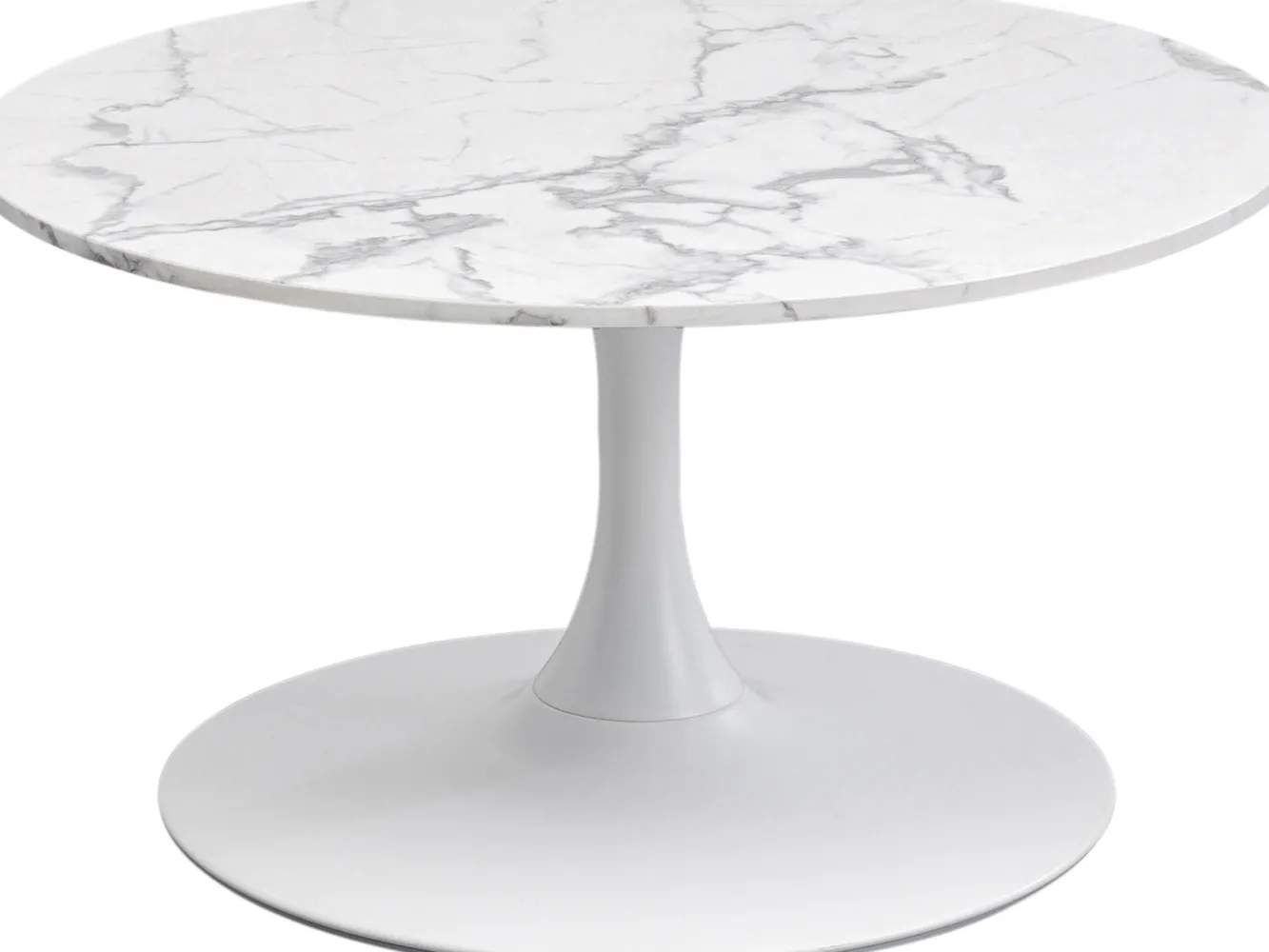 Stolik kawowy okrągły biały blat MDF imitacja marmuru Ø80 cm
