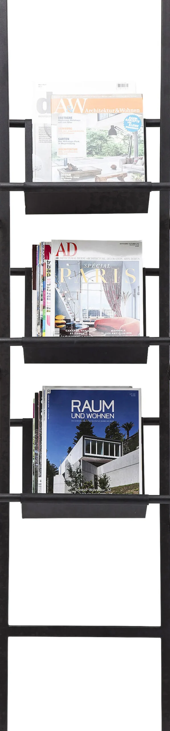Gazetnik Exposition 40×174 cm czarny Wysokość każdej półki mierzonej od podłoża wynosi:- 59 cm,- 94 cm,- 128 cm.