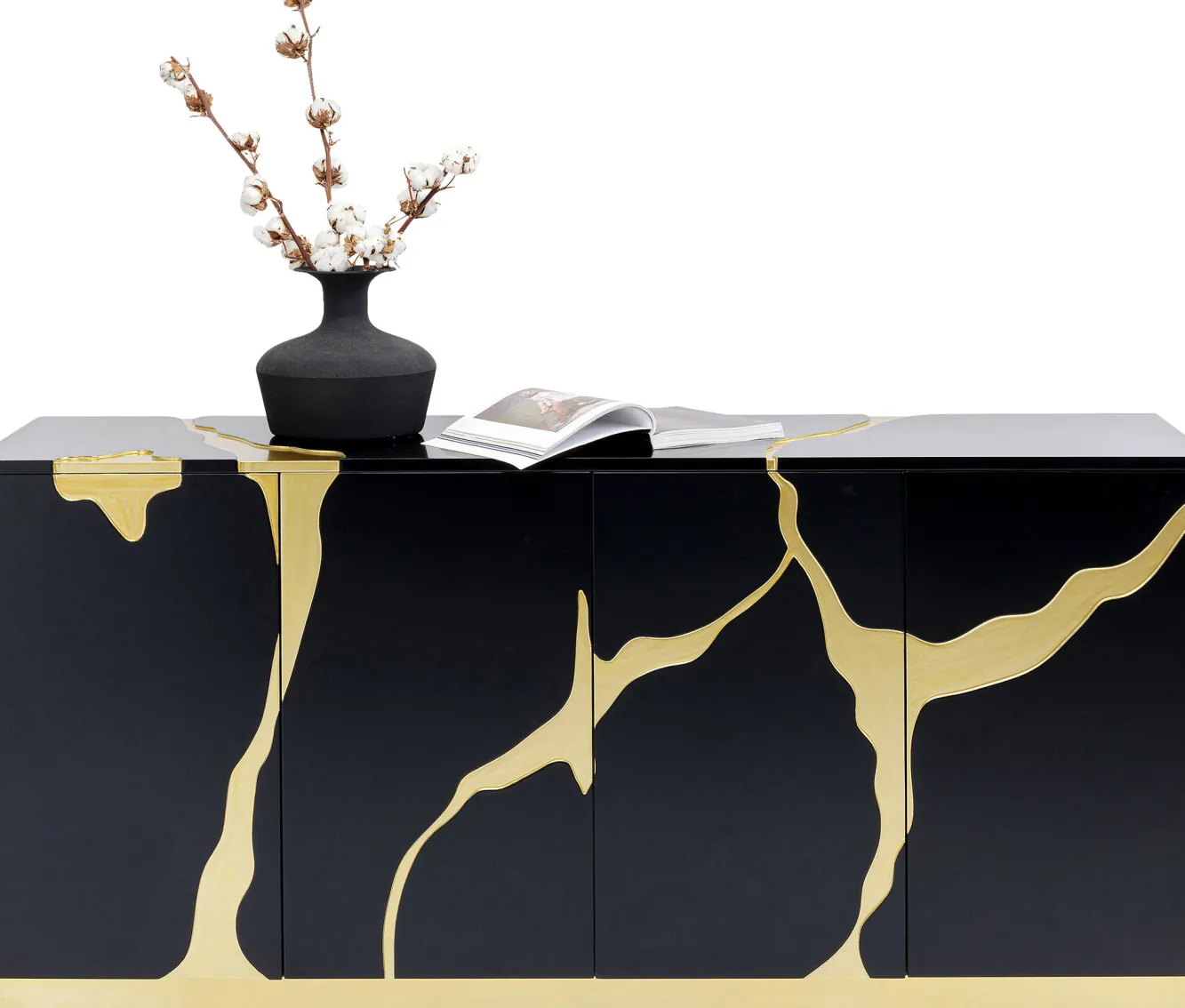Komoda glamour czterodrzwiowa czarno-złota 165 cm