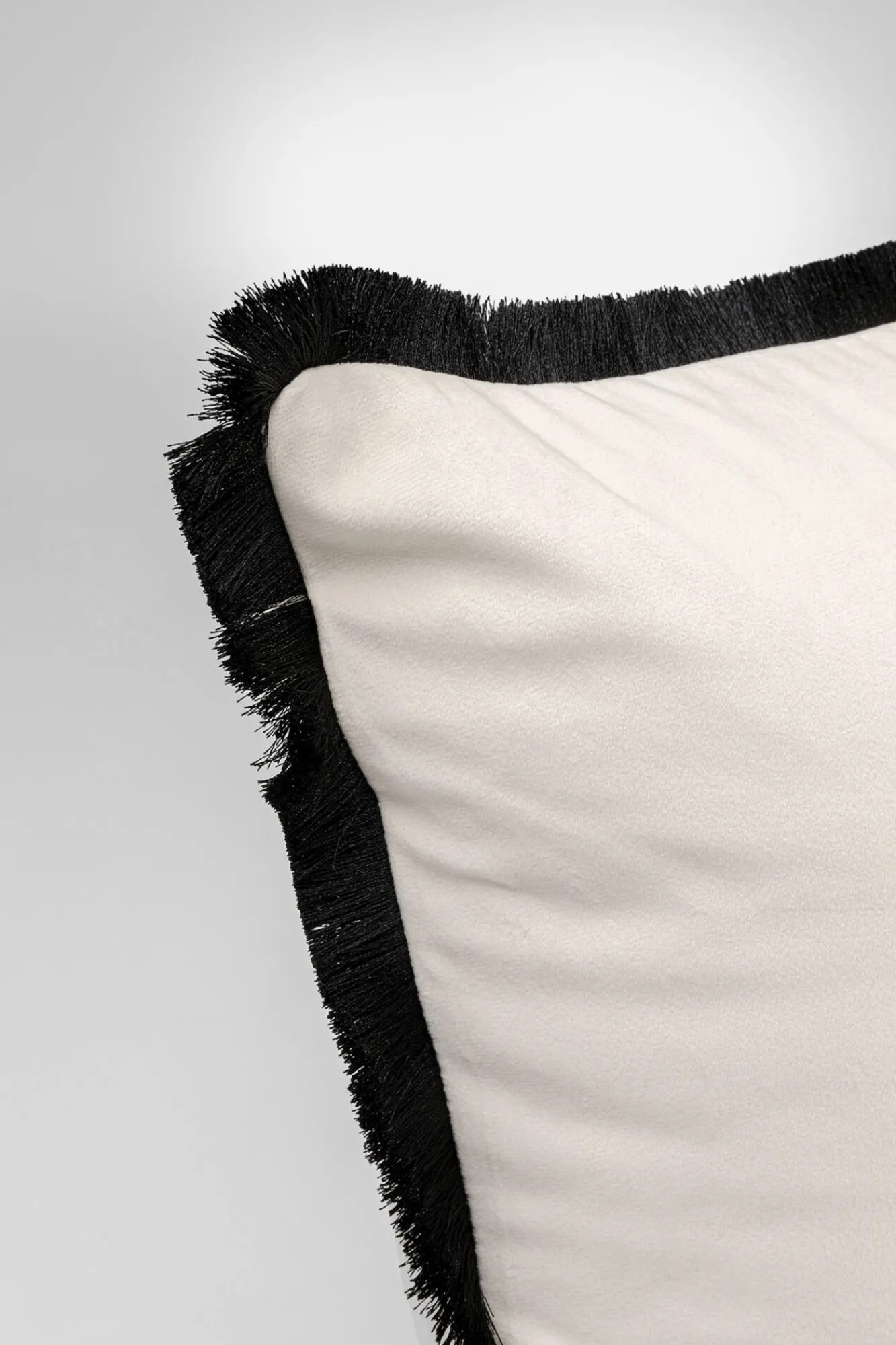 Poduszka dekoracyjna z frędzlami czarno-biała motyw pszczoły 45×45 cm