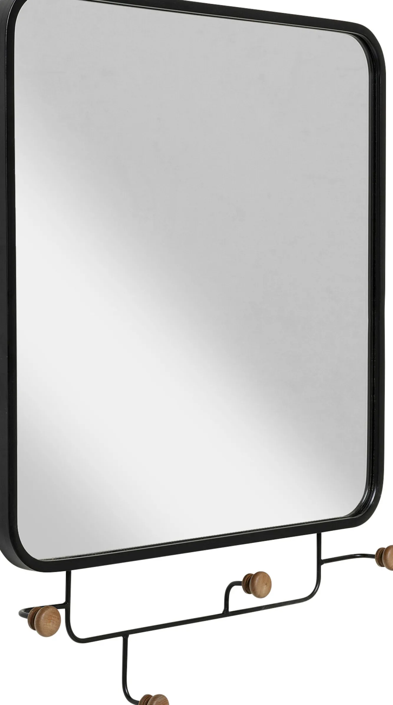 Wieszak ścienny z lustrem czarny haczyki drewniane 50×65 cm Rama: stal lakierowana.Front: lustro.Stelaż: płyta MDF la…