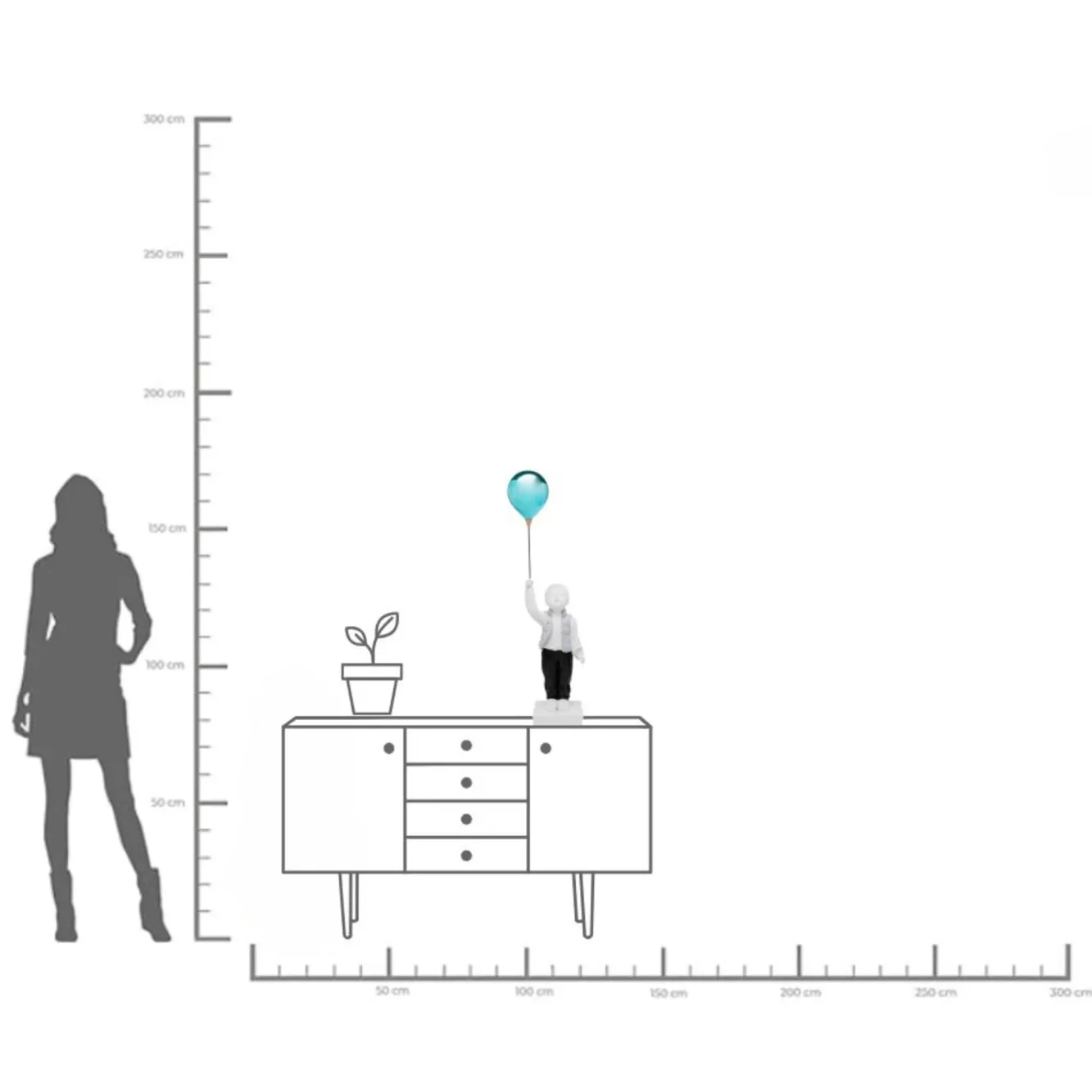 Dekoracja stojąca chłopiec i balon 96 cm Ręczne wykonanie. Każdy egzemplarz jest niepowtarzalny i unikatowy.