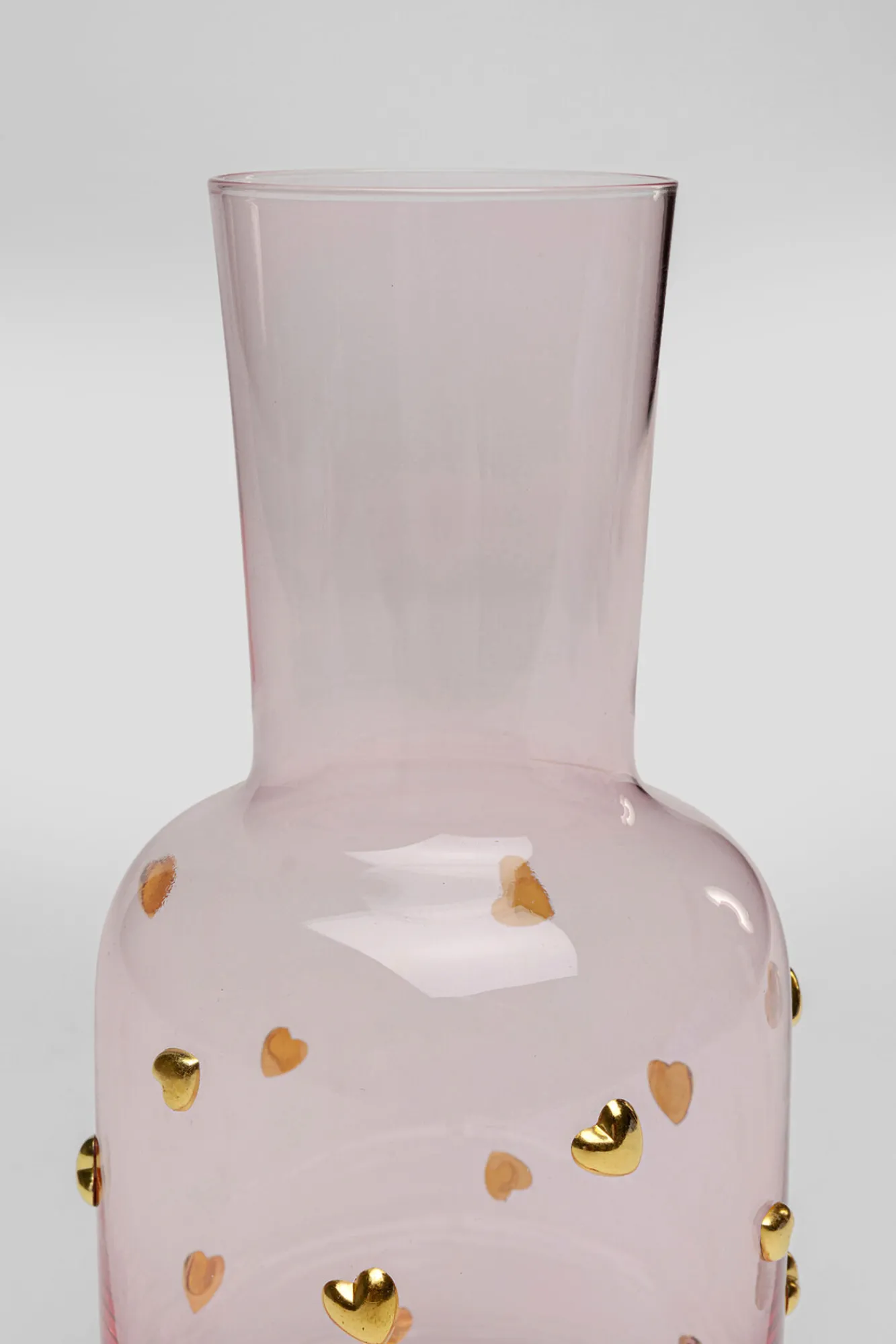 Karafka szklana różowa wzór złote serduszka 755 ml