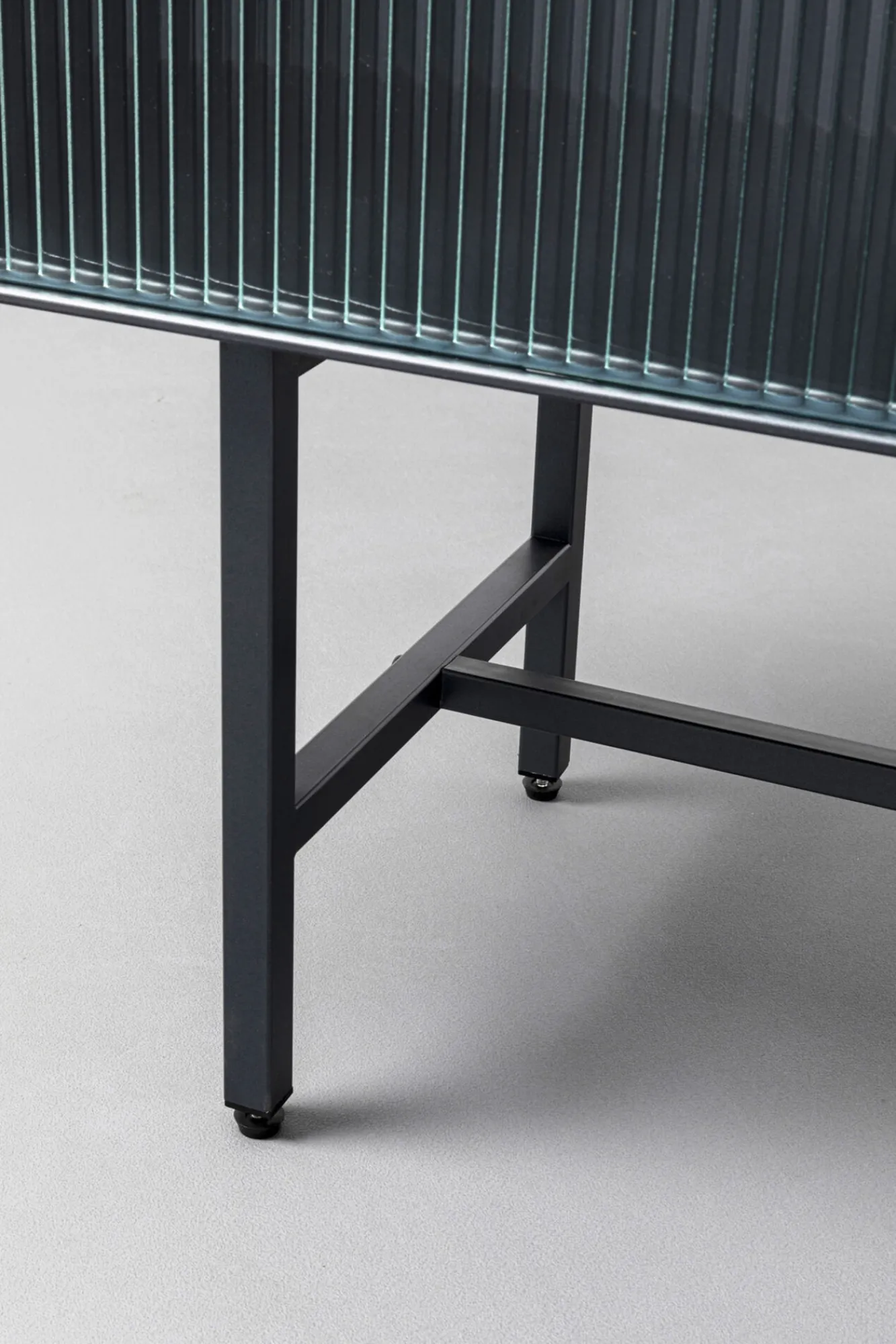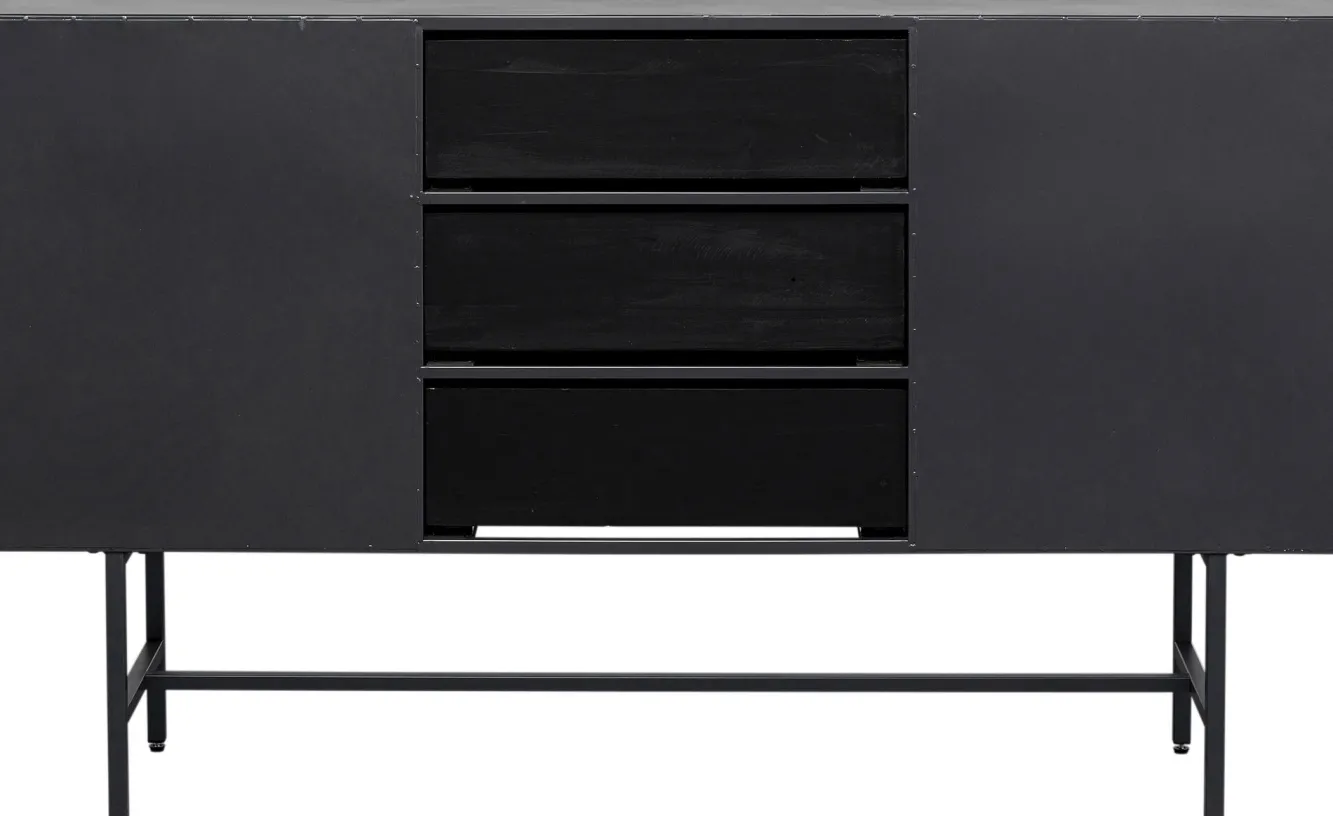 Komoda loft z 3 szufladami czarna stalowa front szkło ryflowane i MDF 150×90 cm Korpus, nogi: stal malowana proszkowo.F…