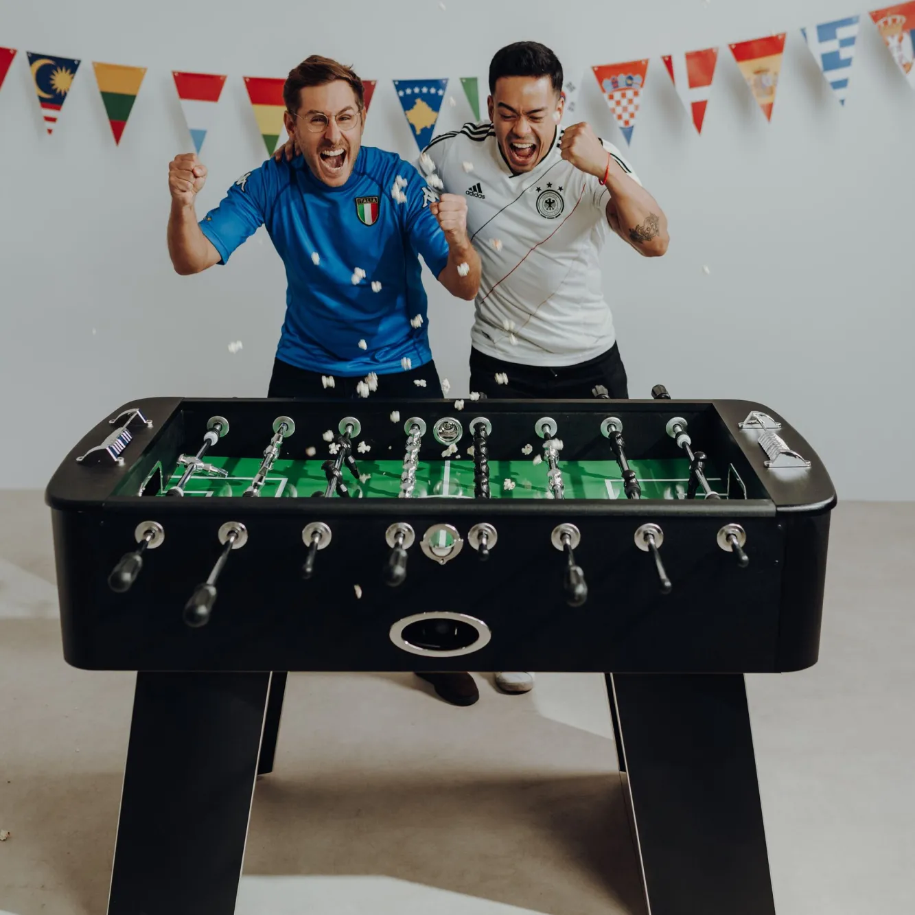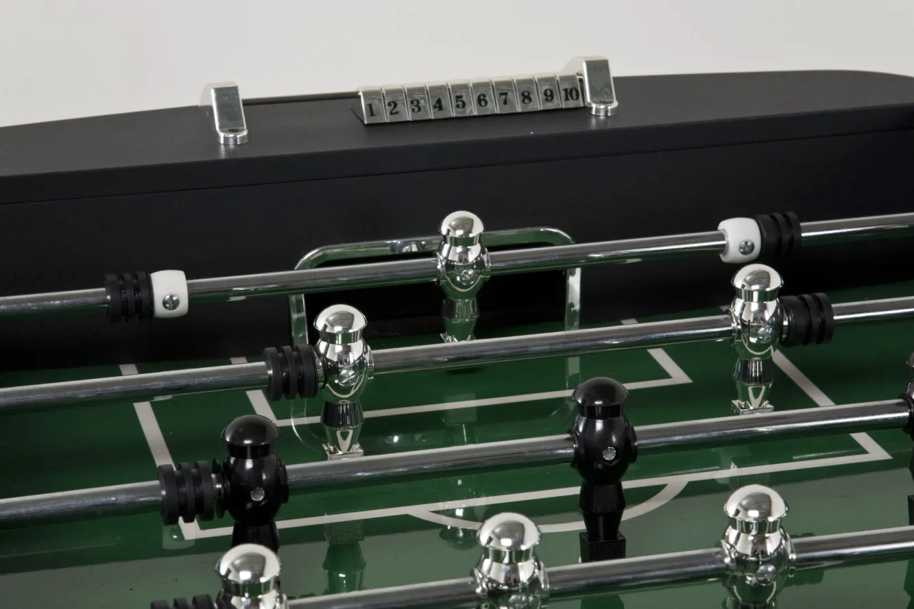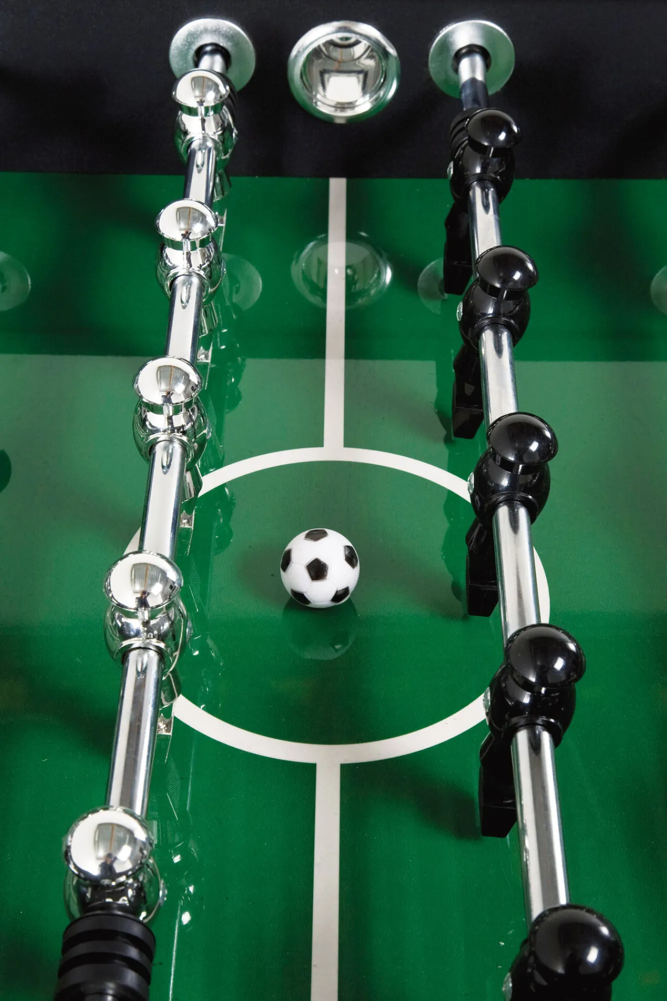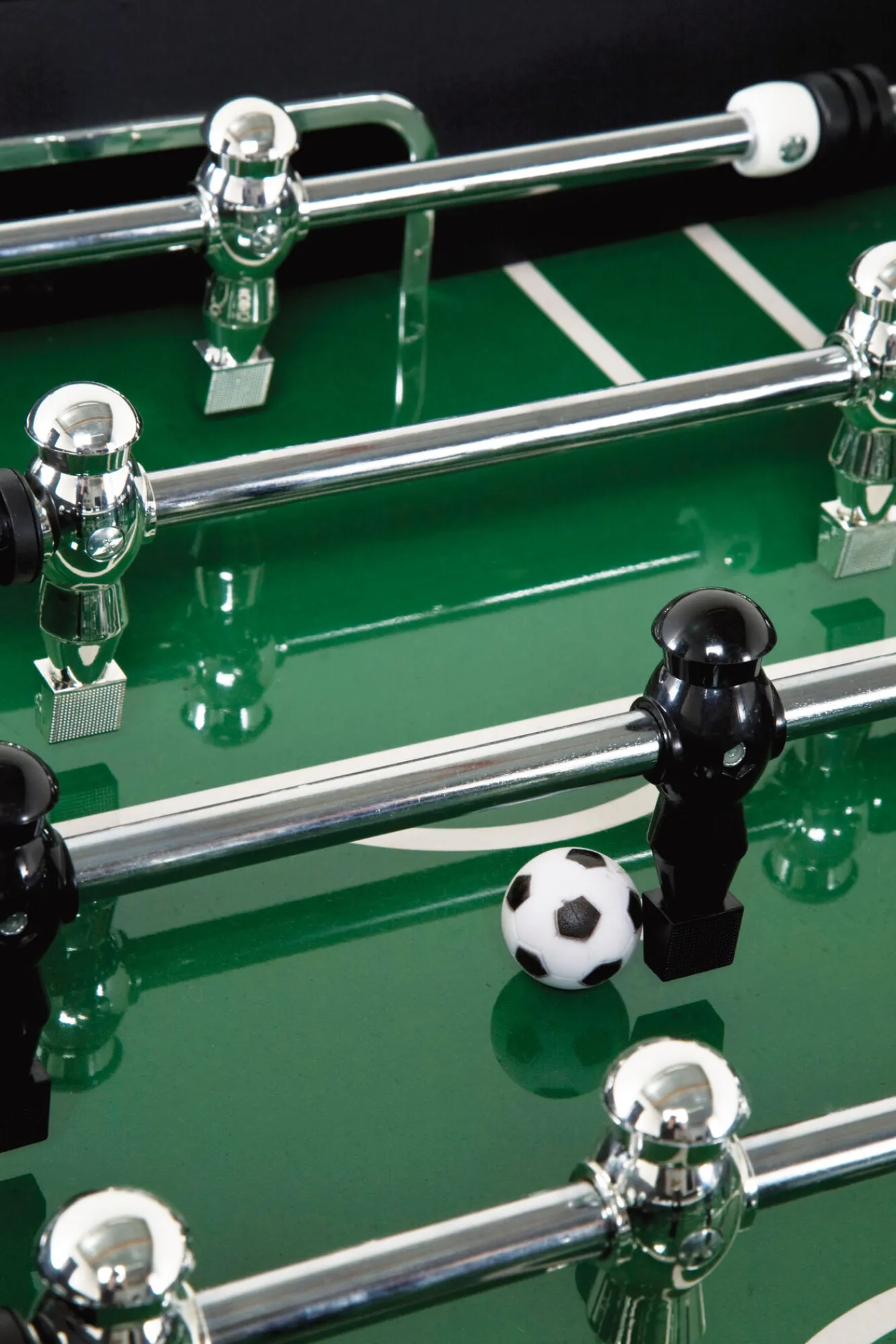 Stół do gry w piłkarzyki w kolorze czarnym z zielonym boiskiem i kolorowymi piłkarzykami marki Kare Design. Szerokość 145.4 cm. Wysokość 88.3cm. Głębokość 76.2cm. Stół do gry w piłkarzyki w kolorze czarnym z zielonym boiskiem i kolorowymi piłkarzykami marki Kare Design. Szerokość 145.4 cm. Wysokość 88.3cm. Głębokość 76.2cm.